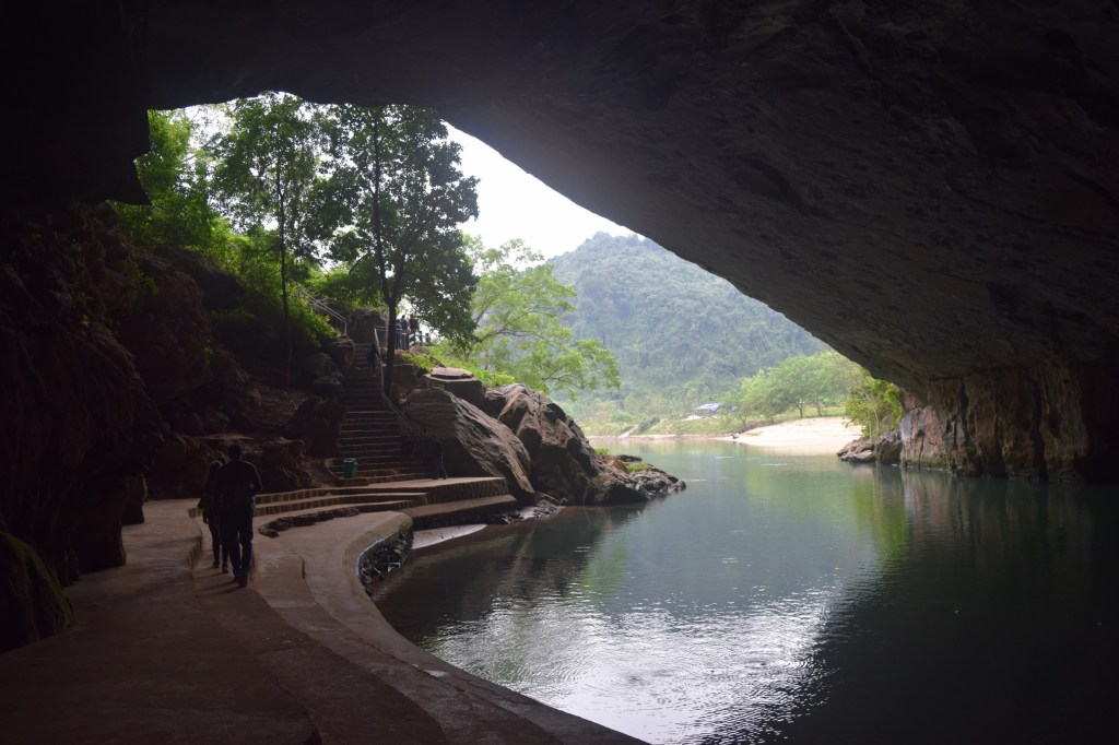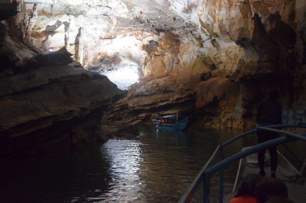 After travelling through the cave and back we went ashore inside the cave. We left the boat and would return to it once we were outside the cave. Our guide pointed out how this cave as a field hospital during the Vietnam war.