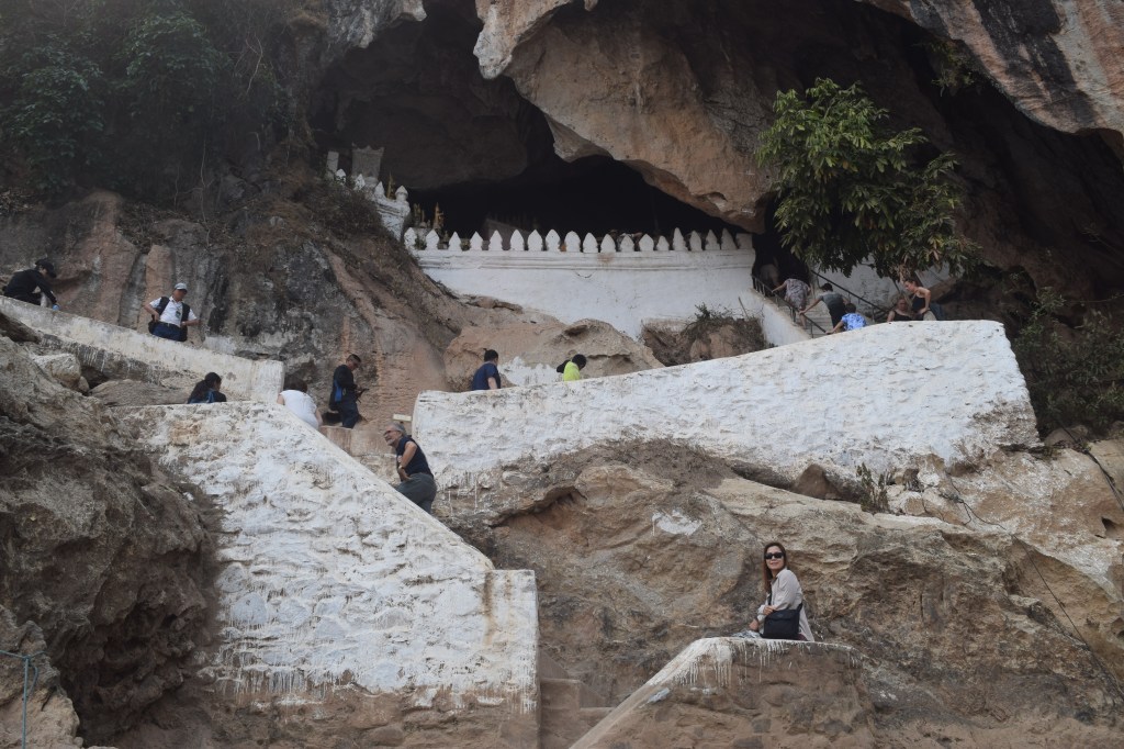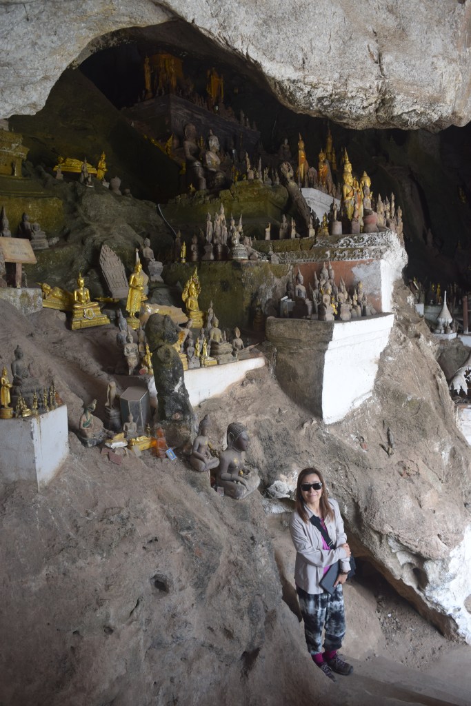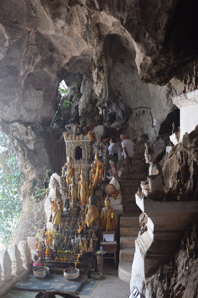 Our next stop was the Pak Ou caves which have been popular with locals for hundred of years. Over the years locals have dropped off Buddha statues until the caves were full of them.