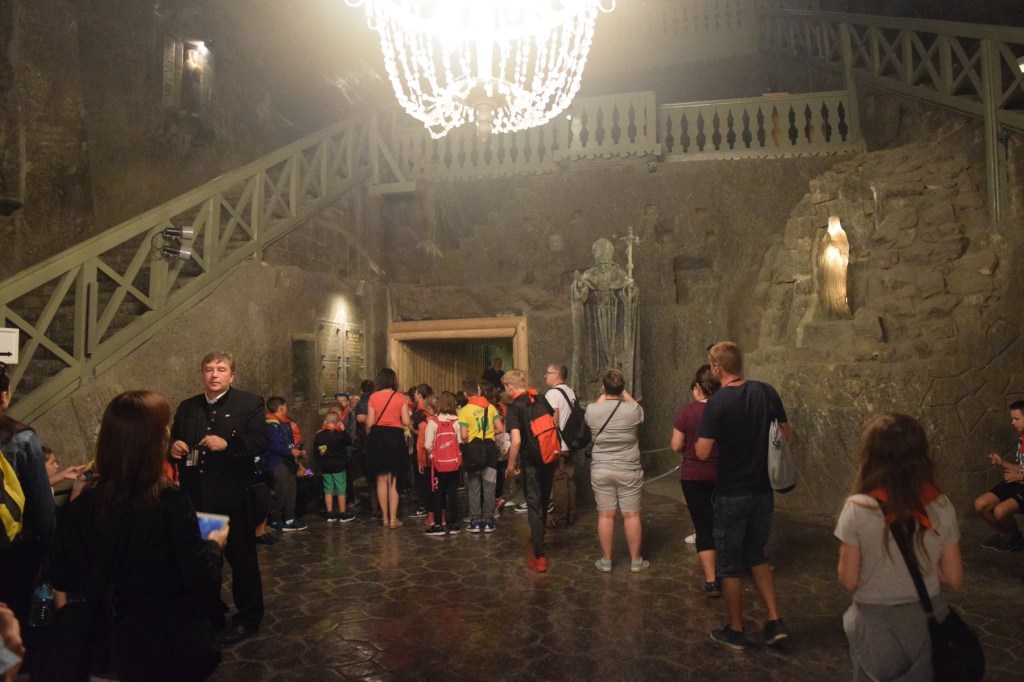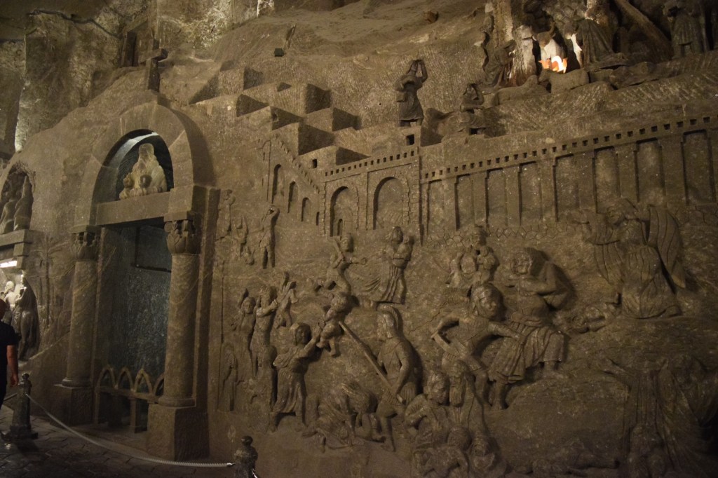 After reaching the bottom and going through more tunnels we reached on of the largest rooms. This was St. Kinga’s Chapel, considered to be the largest underground church in the world. The attention to detail in the room was amazing, as were all of the carvings and statues made of salt.