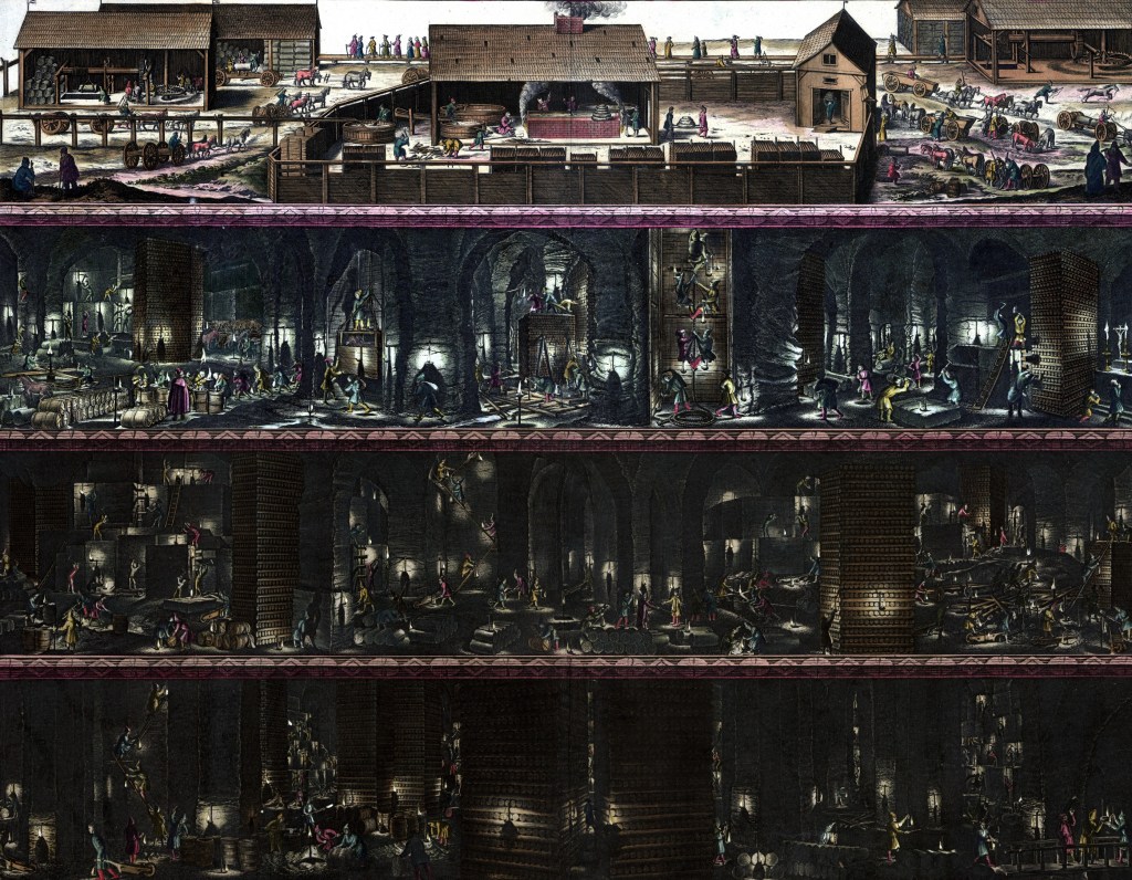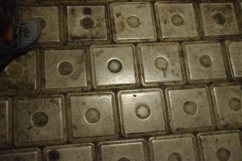 We went deeper down wooden stairs past piles of salt