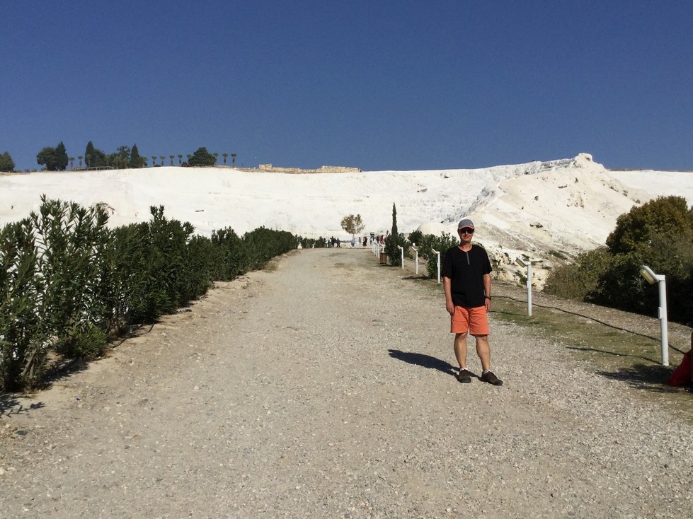 After reaching the town of Pamukkale and checking into the hotel we quickly drove over to the main entrance at the other end of the town. Upon arriving it looked like we were going to climb a ski hill, except it was warm out and all that white stuff was definitely not snow.
