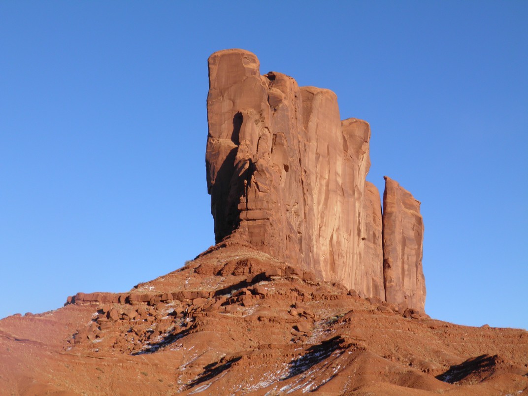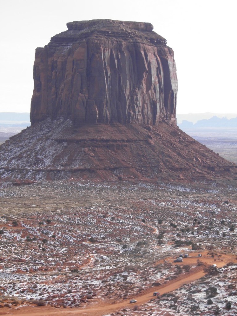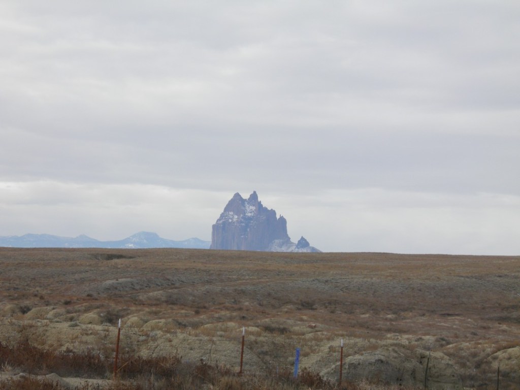 Because of its religious significance to the Navajo the rock is off limits to visitors and we couldn’t get close to it. It was still impressive from a distance–huge and striking and so different from the land around it.