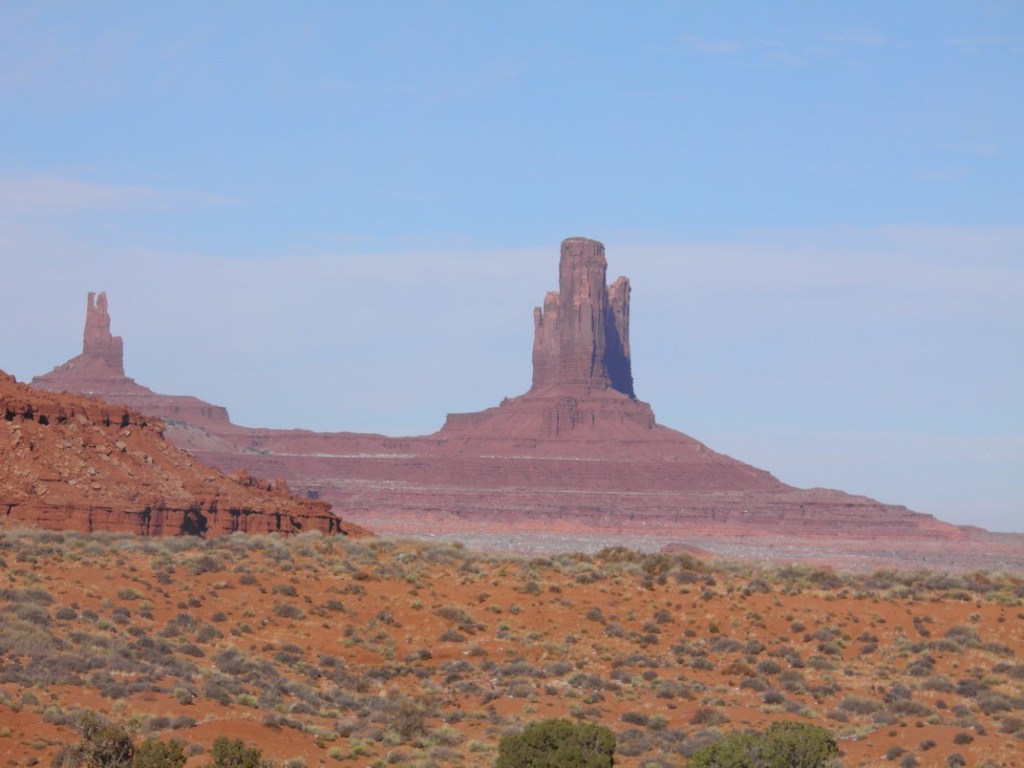 Once we were back into Arizona and heading north on Route 163 the land really began to resemble the scenes from the old Westerns I remembered as a kid. Dramatic buttes, hoodoos, monoliths and mesas began to appear as we approached the entrance to Monument Valley.