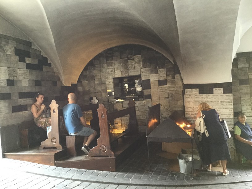 Inside was a religious painting that survived a massive fire in 1731. It was subsequently used as the centrepiece of a tiny chapel that has been in use there since that time. You literally walk under the gate, pass the chapel and you are outside again. It was quite a unique place.
