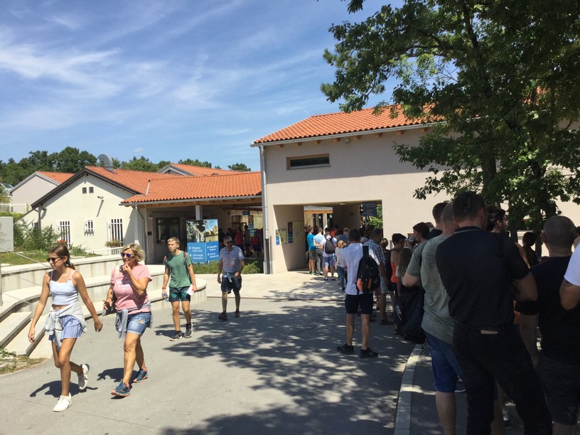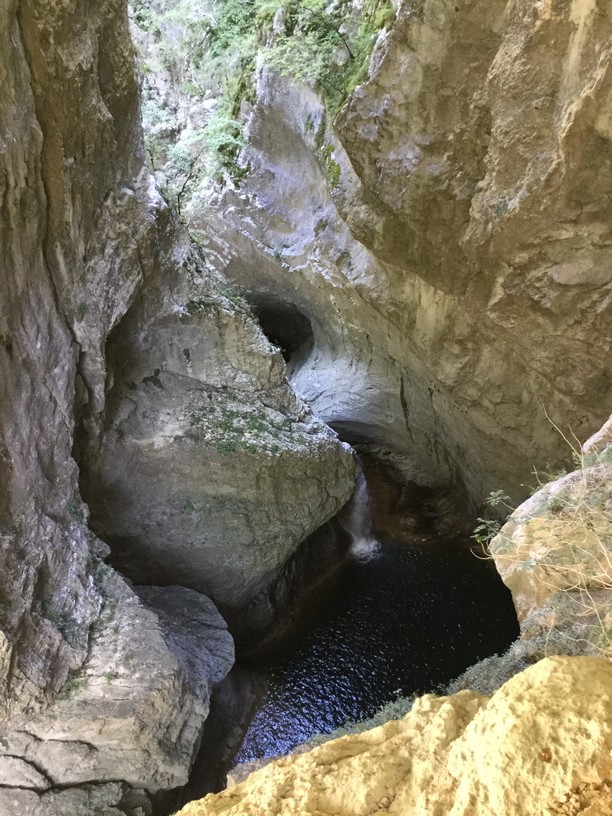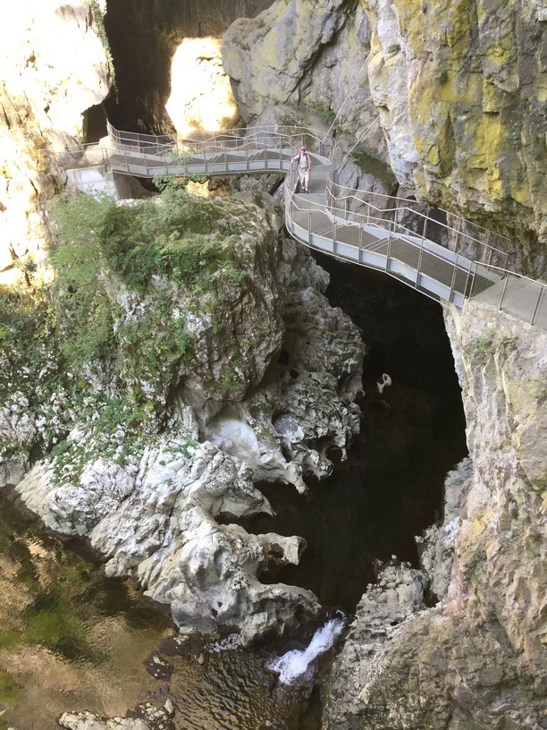 When arriving at the ticket booth there are a couple options. There is the standard guided underground tour that takes about 1.5 hours. There is also a combination of the underground portion and another self-guided walk that follows the canyon inside and outside. This one takes an extra hour or two to do depending on your pace. In our case it cost just a few euros more and looked well worth it but we had a dilemma. Because we had arrived by mid-afternoon we had to worry about getting the last train back to Ljubljana leaving Divača at 6 p.m.