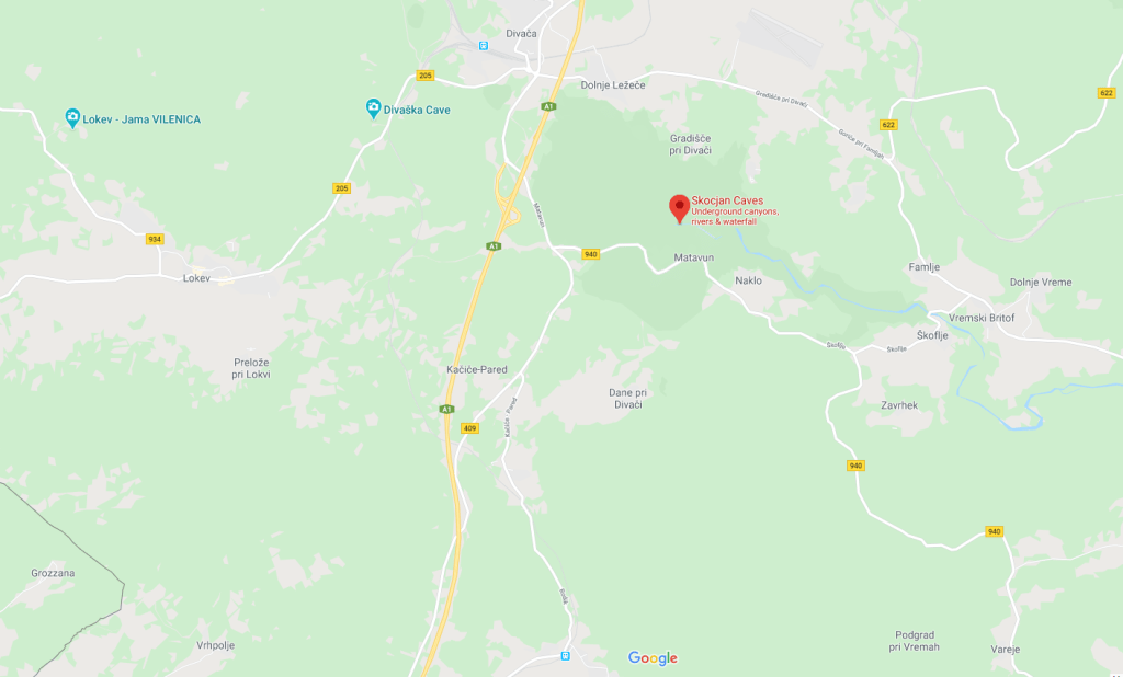 Get off the train at the Divača railway station. There is a map at the station showing a footpath to the Škocjan Caves. The path is around 3 kilometres long and well marked. It will take you around 35 minutes of walking.