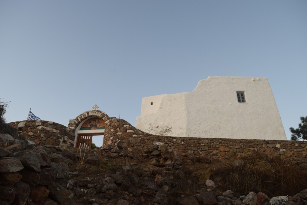 After getting our rental car we explored the immediate area. Some of the best views of this part of the island were from nearby St Antonios Monastery, so we drove up to have a look. We went up Kefalos Hill, a non-active volcano with the monastery located where the crater should be. The entire hill has an interesting history, as it was originally a Venetian castle until the 16th century and was the last Venetian stronghold in the region. This castle was held for years while the rest of the island was under Ottoman occupation, finally falling in 1537 after an attack by the Turkish pirate Barbarossa. Although nothing remains of the castle, the rocks used to construct the walls are still visible on the slopes of the hill.