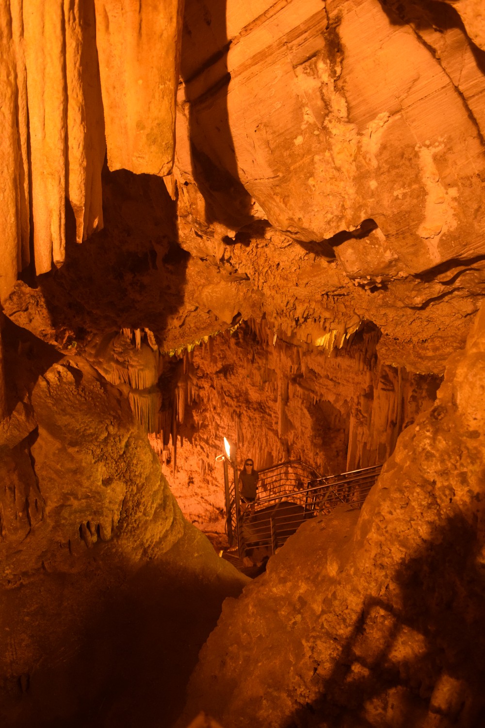 We made our way down. Visitors originally had to lower themselves with ropes but we had strong stairs and good lighting to help us. It was not a wide cave so we were on the stairs much of the way, with stops at a couple levels where things opened up before descending further. There was a total of 411 steps taking us 100 metres (328 feet) deep.