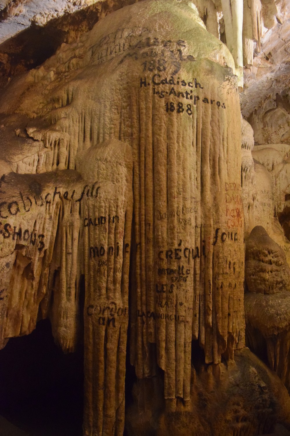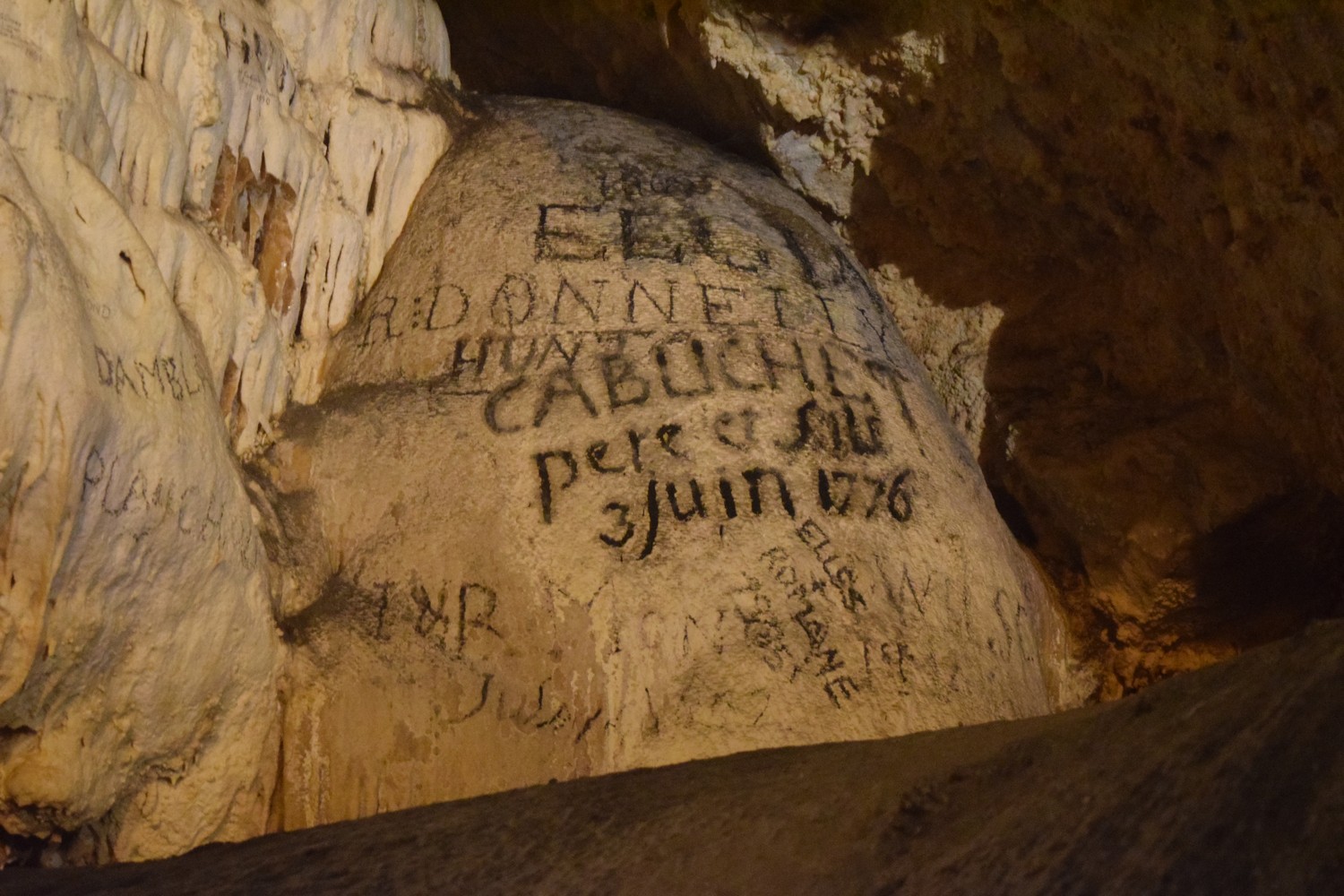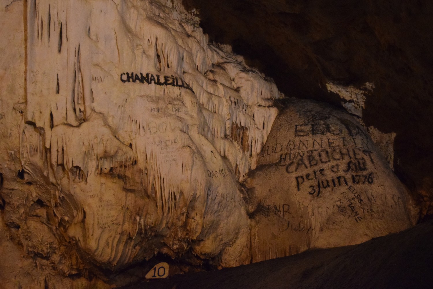 One of the most interesting features was the old graffiti in the came, much of it in French and dating from the 18th and 19th centuries. The carefully written French script in large letters on the stalactites was strange to see.