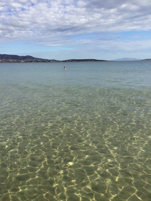 With the afternoon passing by we had to get a ferry back to the main island. But we had enough time to visit one of the beaches so we chose Glyfa beach located a bit south of the town. There were only a few people around and we had a nice spot all to ourselves. It was a pleasant swim in clear water with Paros as the background.