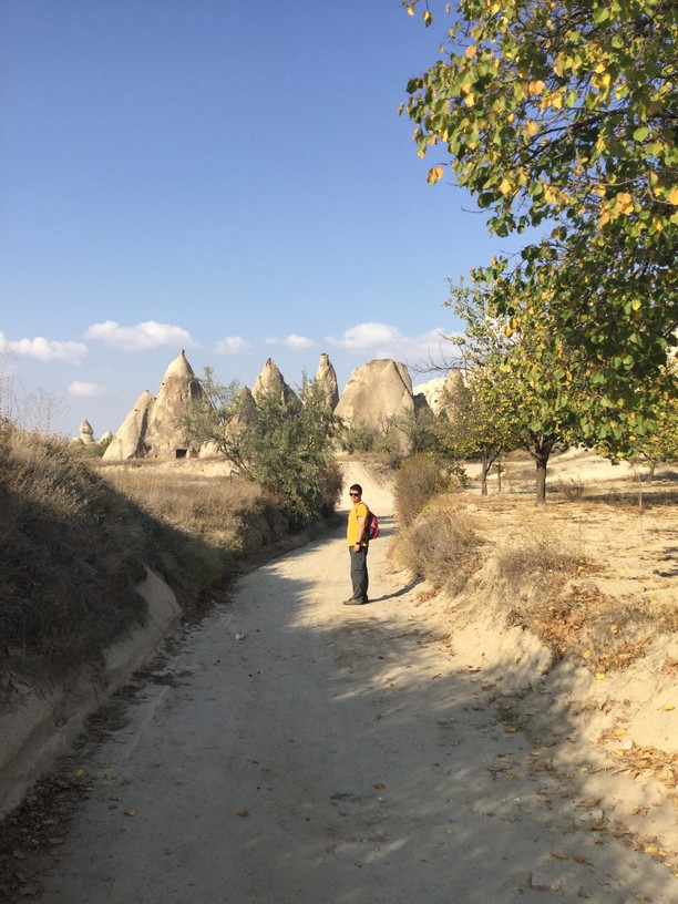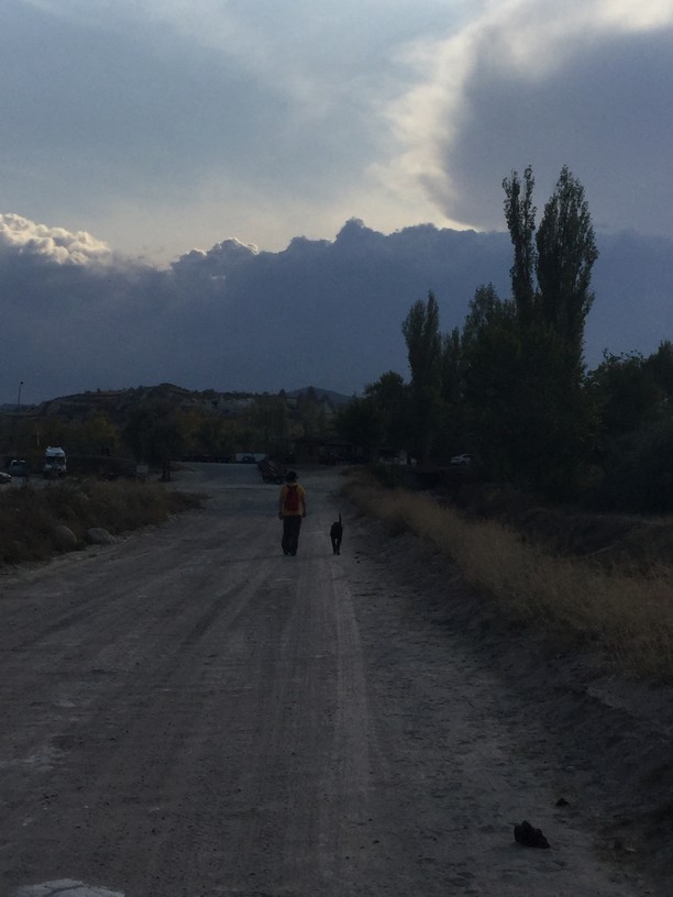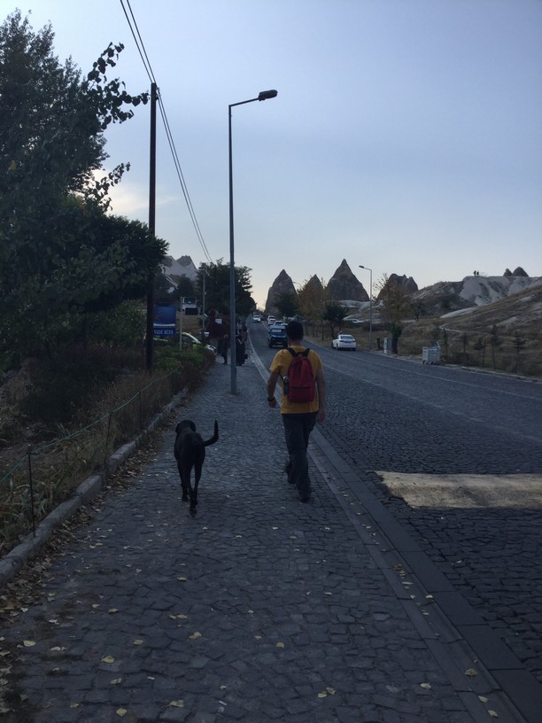 At the end of this portion of the trail I picked up a companion before we came back to Göreme. He seemed to have come from a small caravan of trailers between the town and the chimneys, possibly belonging to farmers or seasonal workers. I talked to him as we made our way back towards Göreme. He followed me all the way back to town. Kim thought it was funny that he stayed so close to me even though I didn’t have any food to give him.