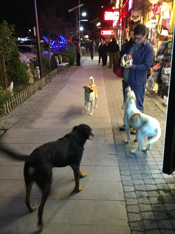 There were a lot of stray dogs in Göreme, and they were generally friendly to people though not always friendly to each other. We found that out when I bought some beef sandwiches to give them (no sauce) and a few got aggressive when trying to prevent other dogs from eating them. It was nice to give something to the local doggies, but we knew our efforts weren’t doing anything to solve the problem. We were just feeding a few of them for one night.