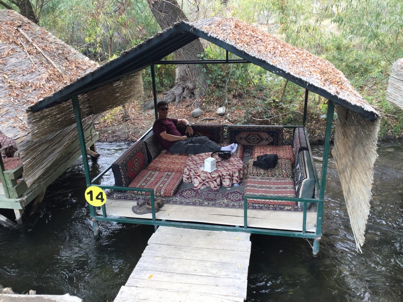 Near the end of the trail there was a small set of huts built over a tributary of the main stream. They served simple foods and drinks at reasonable prices for people hiking through the valley. We stopped and sat in one of the huts where we enjoyed a drink and watched the ducks swim under us.