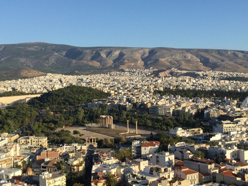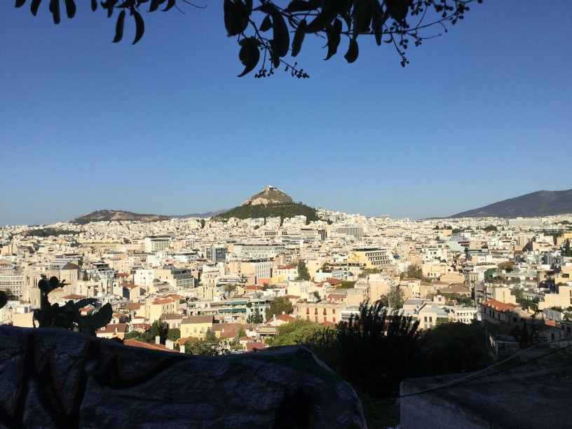 Once at the top we had great views of Athens. There is one spot in particular that is easy to find–just go towards the giant Greek flag. This is the best lookout point though it is likely to be crowded. We could see the city, the hills and far-off monasteries from the viewpoint.