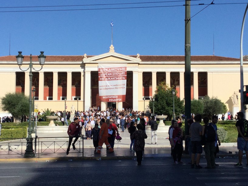When we went by the central building of the University of Athens we noticed a protest forming, so we stepped back and observed. It was an angry demonstration but people seemed to be content to make their voices heard and march down the streets which the police had cordoned off. After a few minutes we moved on.