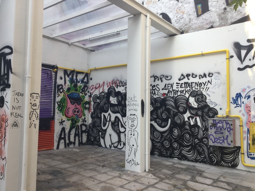 On the way we passed bookshops and other small stores. Eventually we reached the heart of Exarcheia. The neigbourhood did have a different feel to it and was very quiet in many parts; however, the busier sections with the cafes were lively and friendly.