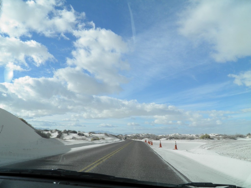 It only looked like a winter wonderland when we went through White Sands National Park. The weather was chilly but quite dry. Little did we know that just a few days later we would hit a record snowstorm as we entered Albuquerque, with a foot of snow hitting the ground and forcing us to adjust our plans heading back to Arizona. But that’s a story for another time…