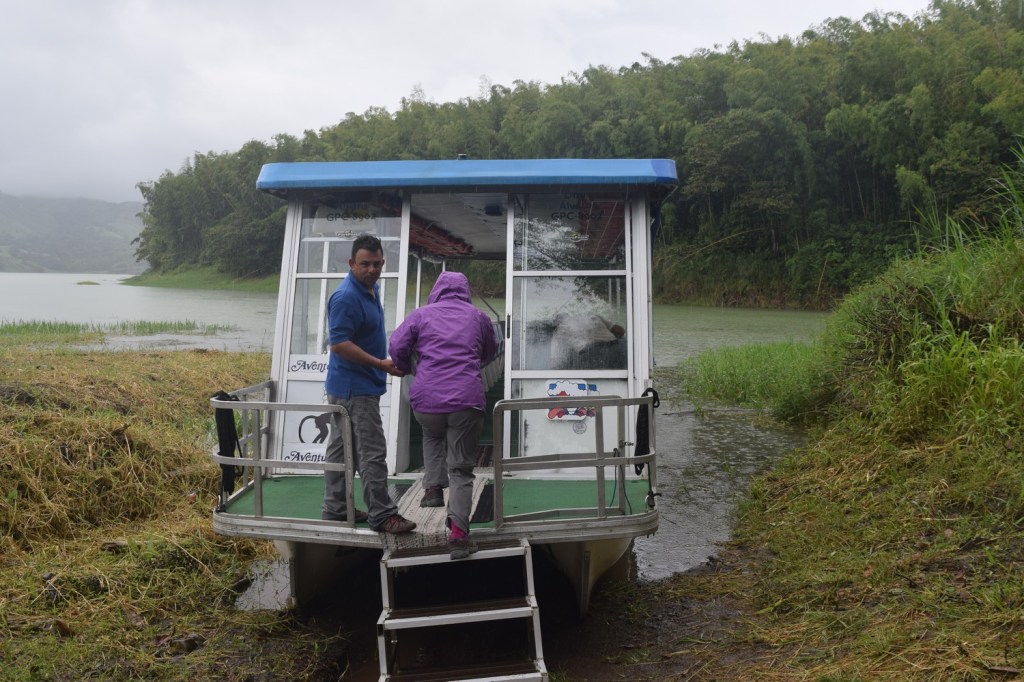 From there we took a boat across the lake. At this point the grey clouds had opened up and it was a steady rain.