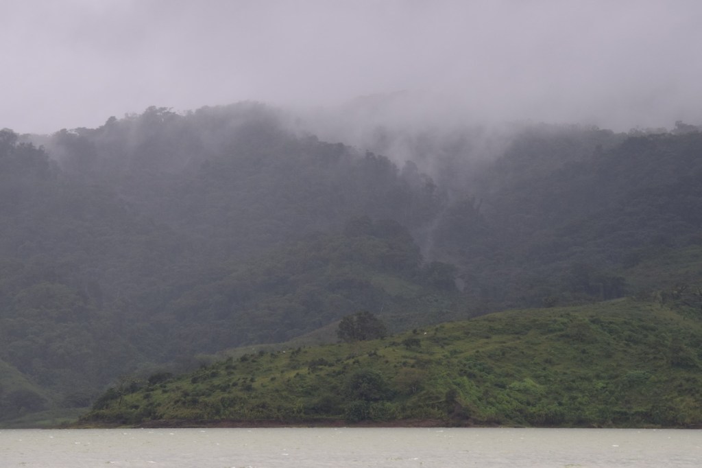 Although conditions were less than ideal, it was a nice trip across Lake Arenal. It is the largest lake in Costa Rica at 85-square-kilometre (33 sq mi). The scenery was dark and misty as the boat crossed the lake. Despite the weather we saw some birds on the lake.