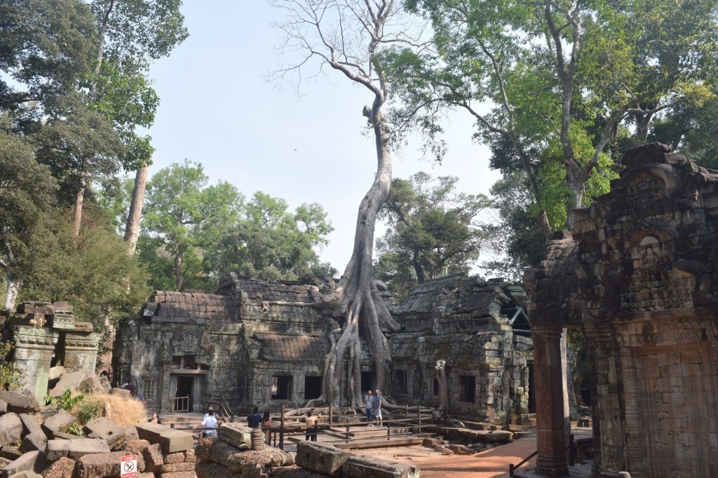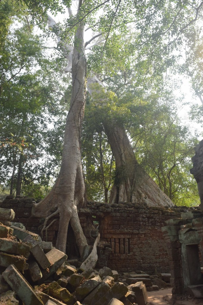 After visiting Angkor Wat we were driven to nearby Ta Prohm temple. Dating from the late 12th century, it was originally called Rajavihara (royal monastery). Founded by King Jayavaram VII, it functioned as a Mahayana Buddhist monastery and university. It has been more or less left in the same condition in which it was found.