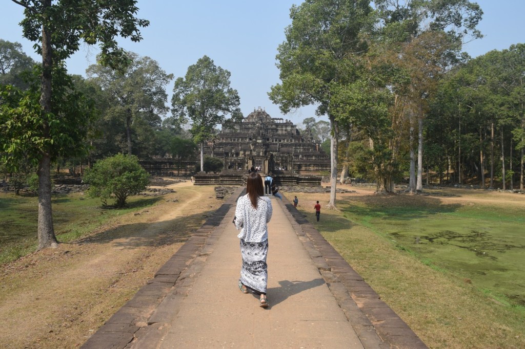 Just northwest of Bayon Temple, where we visited on day one, was an elevated platform connected to a walkway leading to the Baphuon Temple. This was located just outside the royal enclosure of Angkor Thom. Dedicated to the Hindu god Shiva, it was constructed in the 11th century. The original structure was renowned for its bronze tower that earned it the title of the “Tower of Gold.” Later converted into a Buddhist temple, the complex was in bad shape when a restoration project was undertaken in the 20th century.