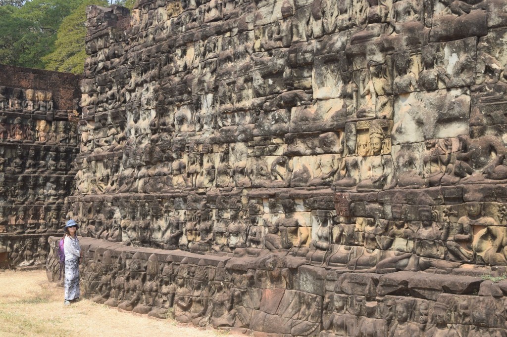 Located just north of the Terrace of the Elephants is the Terrace of the Leper King, so named because it is believed that two of the kings from this era had leprosy, though there is some dispute about this. Another theory is that the Hindu god of death, Yama, is depicted in the terrace. The base of the terrace is composed of five layers of detailed carvings, and was quite impressive to see.