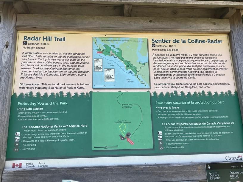 After Long Beach we drove up to Tofino. It’s a lively place but crowded and fairly touristy so we quickly headed back down to check out more beaches and trails. A short drive from Tofino was Radar Hill, a lookout spot where we check out the mountain views.