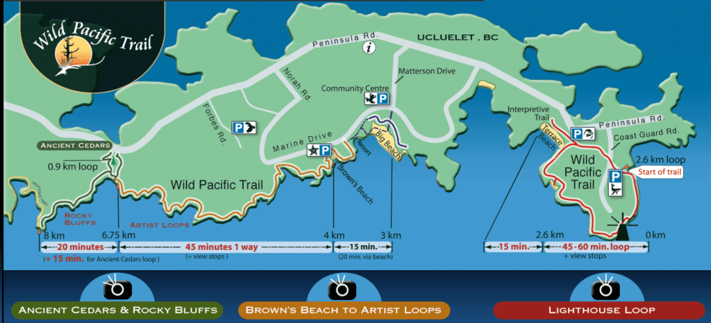 Just south of Tofino and the Long Beach section is an area around the town of Ucluelet that has some great trails. Both the Wild Pacific Trail and the Lighthouse Trail are easy to navigate and give near-constant views of the rough waters off the west coast of Vancouver Island as you navigate the trail.