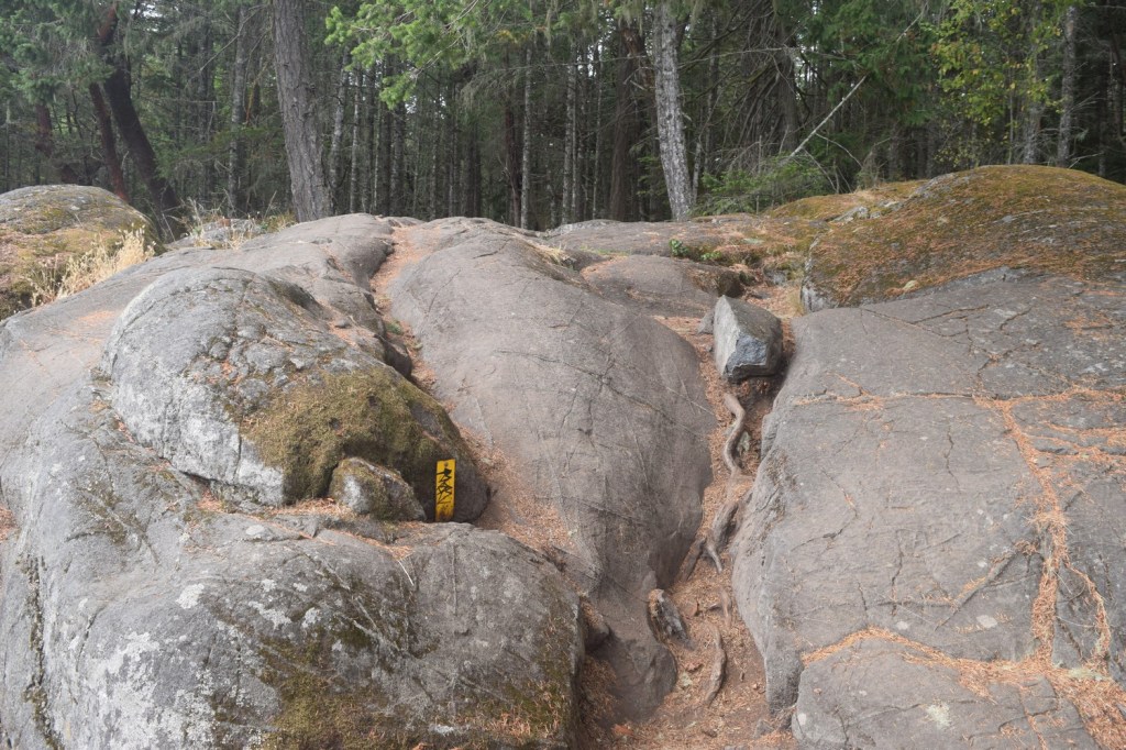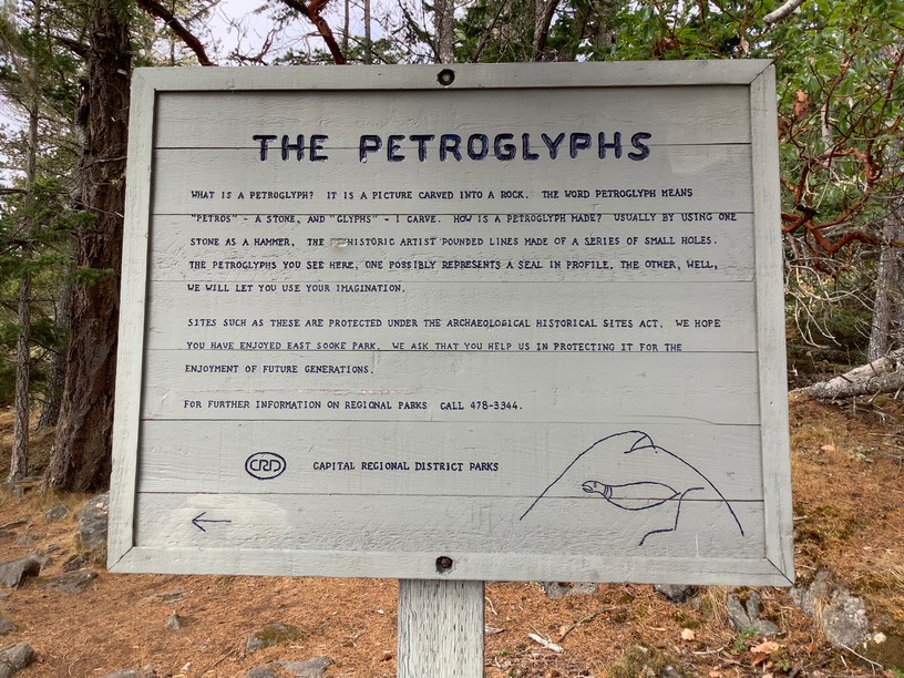 A short distance along the coast trail there is a petroglyph (rock carving) of a seal, created by scraping and pecking the rock face using stone tools. It is an aboriginal tradition that goes back thousands of years.