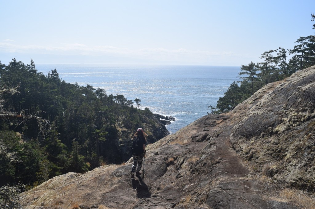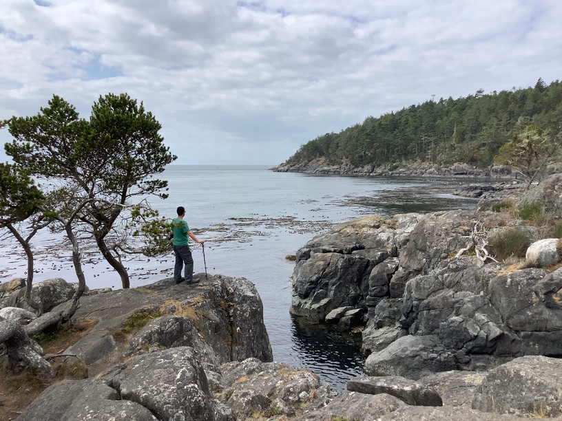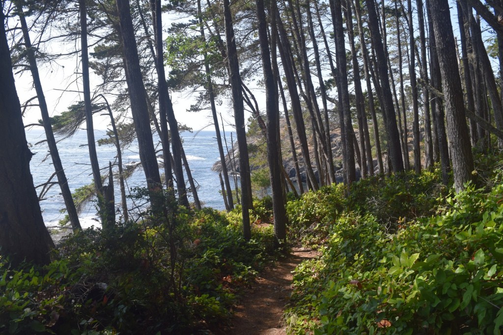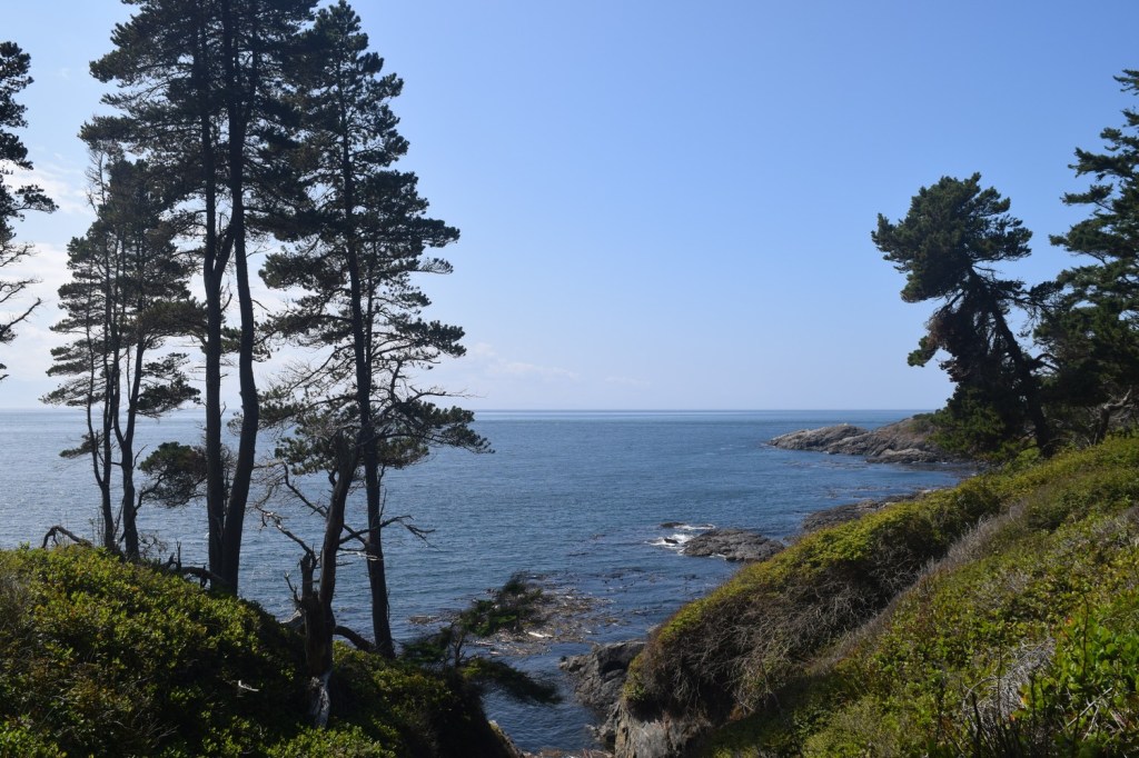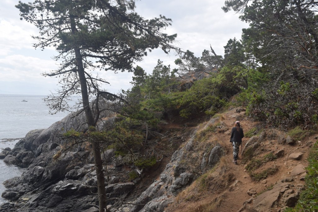 After going through the trails and ocean views of central Vancouver Island, we turned south and made our way to Sooke, a town where we stayed for a few days. Sooke is a central location to visit Victoria (just an hour away), the Juan de Fuca trail (less than one hour west), and the nearby Sooke trails. Just south of the town of Sooke is the East Sooke Trail, part of East Sooke Regional Park. The park includes 50 km (31 miles) of trails that go along the coast and forests of southern Vancouver Island. The best part of the park system is the 10 km (6 mile) coast trail that takes up to 8 hours one way.
