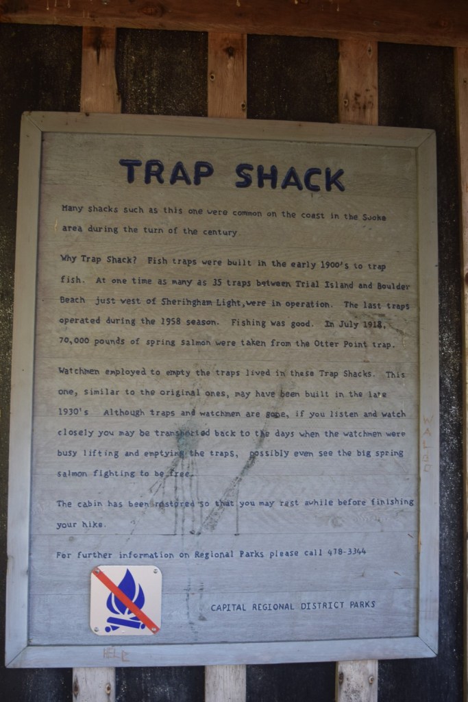 The trap shack used to be a common sight along the coast, and this was a reproduction of a style from the 1930s. Now used as a rest stop, was once a place for watchmen to sleep. With salmon being caught regularly in the area for over 100 years, people were needed to empty the catch while protecting it from others. The watchmen would be employed to lift and empty the traps and stay in the shacks through the fishing season.