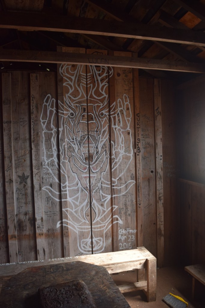 The shack was empty except for a few artistic designs on the walls and windows. After visiting the trap shack we headed back through the forest using an inside trail. Although the forest trail was not flat, the trip was on relatively smooth, sloping terrain. It was a nice change from the rough trail we used for most of the trip. and eventually we returned to our starting point at Aylard Farm. It was a challenging hike, but sore ankles were a small price to pay for the coastal views!