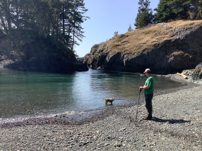 After hours of hiking we were close to the turnaround point. The “trap shack” was the marker where we would head back through the forest. Just before we reached the trap shack, we visited a small cove below it.