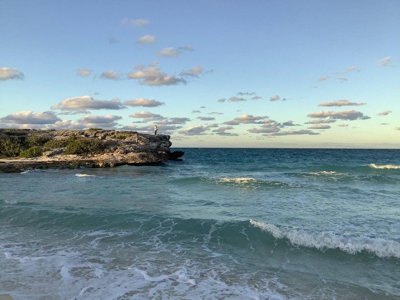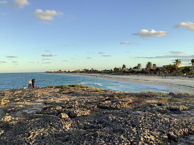 Conditions were windier than they had been on previous occasions, so the water was less calm but still warm enough to enjoy. On one occasion, we walked down the beach to check out a coral outcropping where fishermen waited patiently for the next fish to bite.