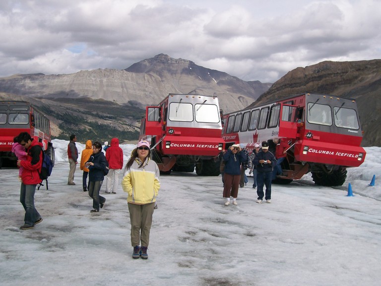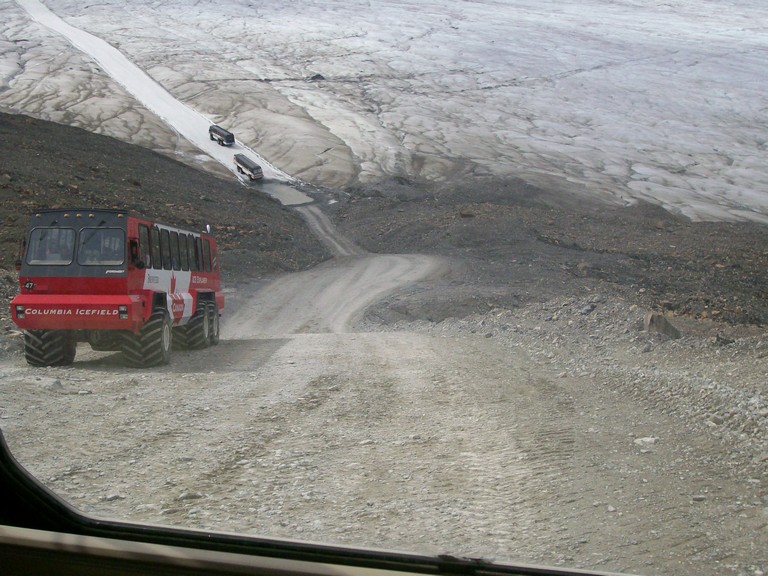 The icefields tour was worth the cost, as it was an opportunity to be right on top of the glacier. From the parking lot we took huge snow vehicles that slowly made their way up the ice road.