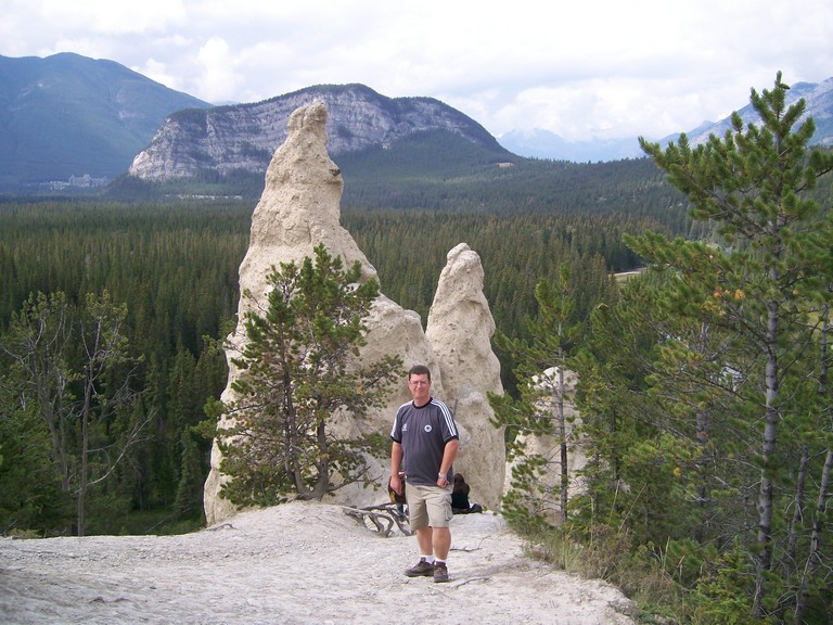 Near Banff there are some hoodoos which are tall rock formations that have formed from erosion. We were able to climb up among them.