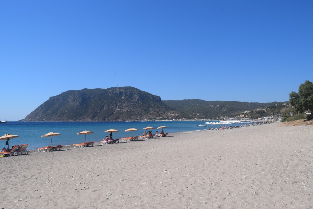We went to a few beaches using the ATV. The first was Paradise Beach, located about 15 minutes north-east of Kefalos. It was well known with tourists and locals alike–buses regularly visited and the beach was covered in sunbeds. The water was calm so it was popular with families. However, it was too crowded for us so we didn’t stay long.
