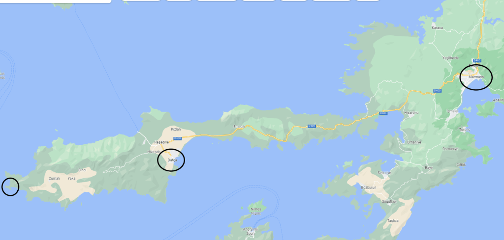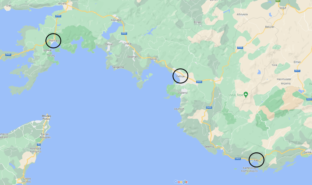 We left Kas in the early morning, left Fethiye around lunchtime and arrived in Marmaris around 5 p.m.