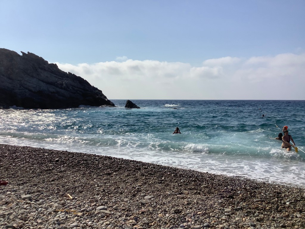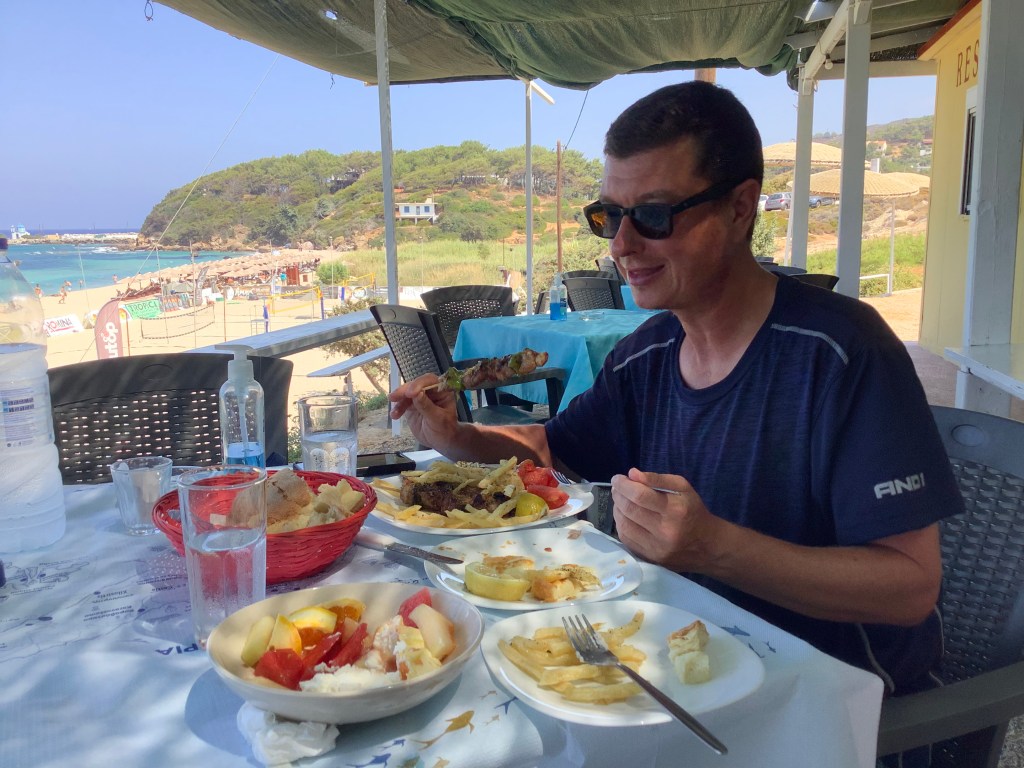 The next day we drove west towards Mesakti Beach (Paralia Mesakti), located about 30 minutes from our Air BnB in Karavostamo. There we had lunch and enjoyed the water. The drive along the coast was winding and we had to be careful in the towns as the roads were narrow and only fit one car many sections.
