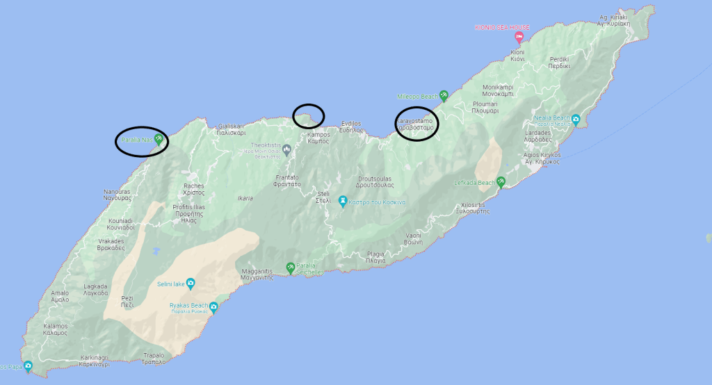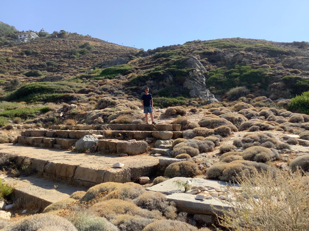 The ferry from Samos took us to Evdilos, a port town on the north side of Ikaria. From there it was a short drive to our AirBnB in nearby Karavostamo. Recently Ikaria had been in the news because it was considered one of the rare places in the world called a “Blue Zone,” where a high percentage of the population lived longer than average, and a significant number made it to 100. Regardless of whether there’s anything to the Blue Zone theory, Ikaria does has a reputation for simplicity and a slower pace to life. It would not be surprising if this coincided with an improved lifespan for its residents.