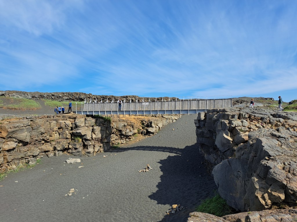 This stop was less than 30 minutes from the airport. It was the point were the North American and Eurasian plates meet deep under the earth. The rift beneath the bridge represented the spot where the plates had split apart, and the dried lava fields all around the area showed how geologically active it had been in the past.