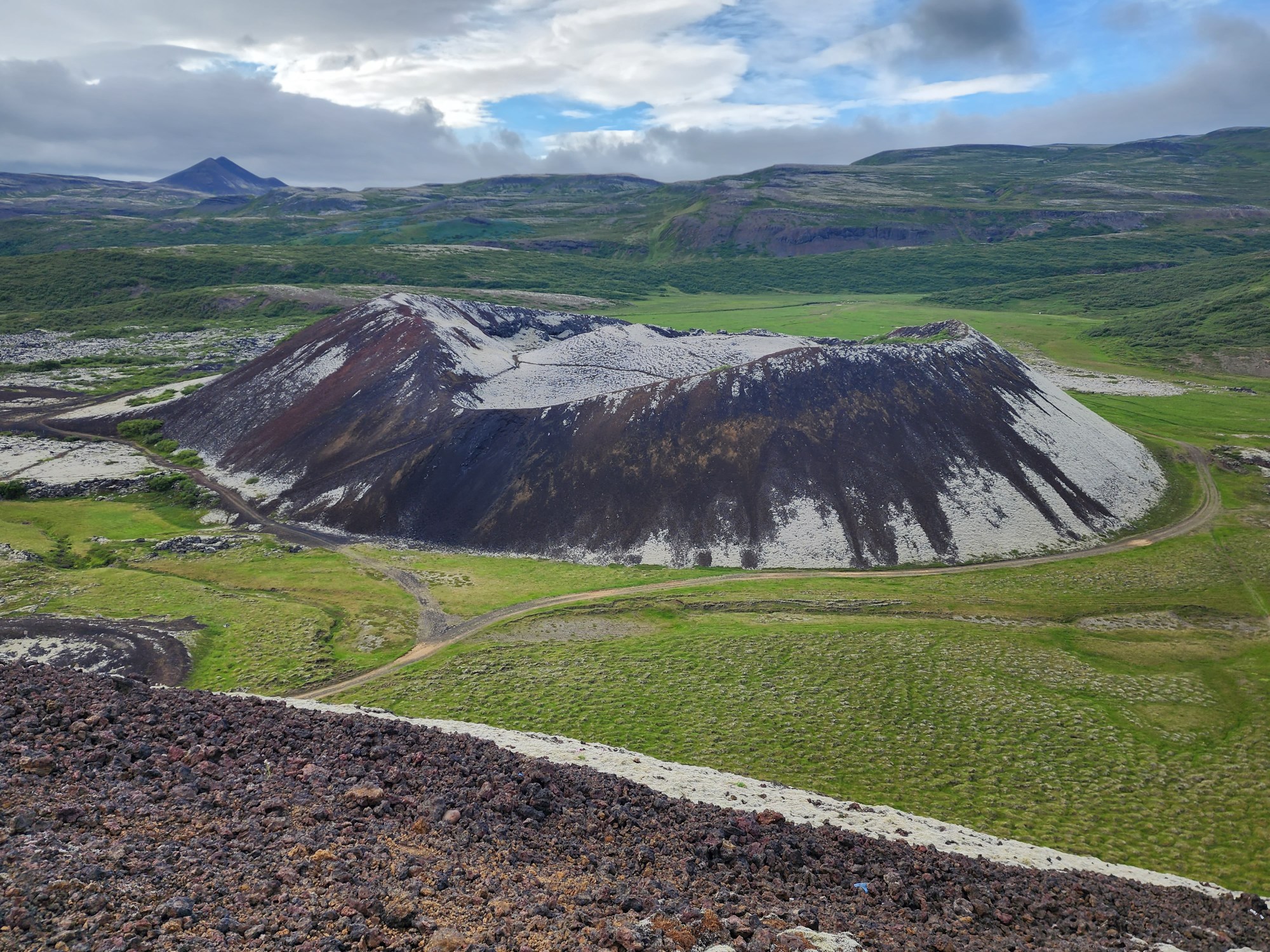 Only a short distance from Glanni Waterfall was Grábrókargigar (Grabok) crater. This stop was right next to the ring road and easy to access. Formed by fissure eruptions, it is a series of three craters set close to each other with a short hike up to the main one. The smallest crater had been seriously eroded due to mining before the place was declared a protected area.