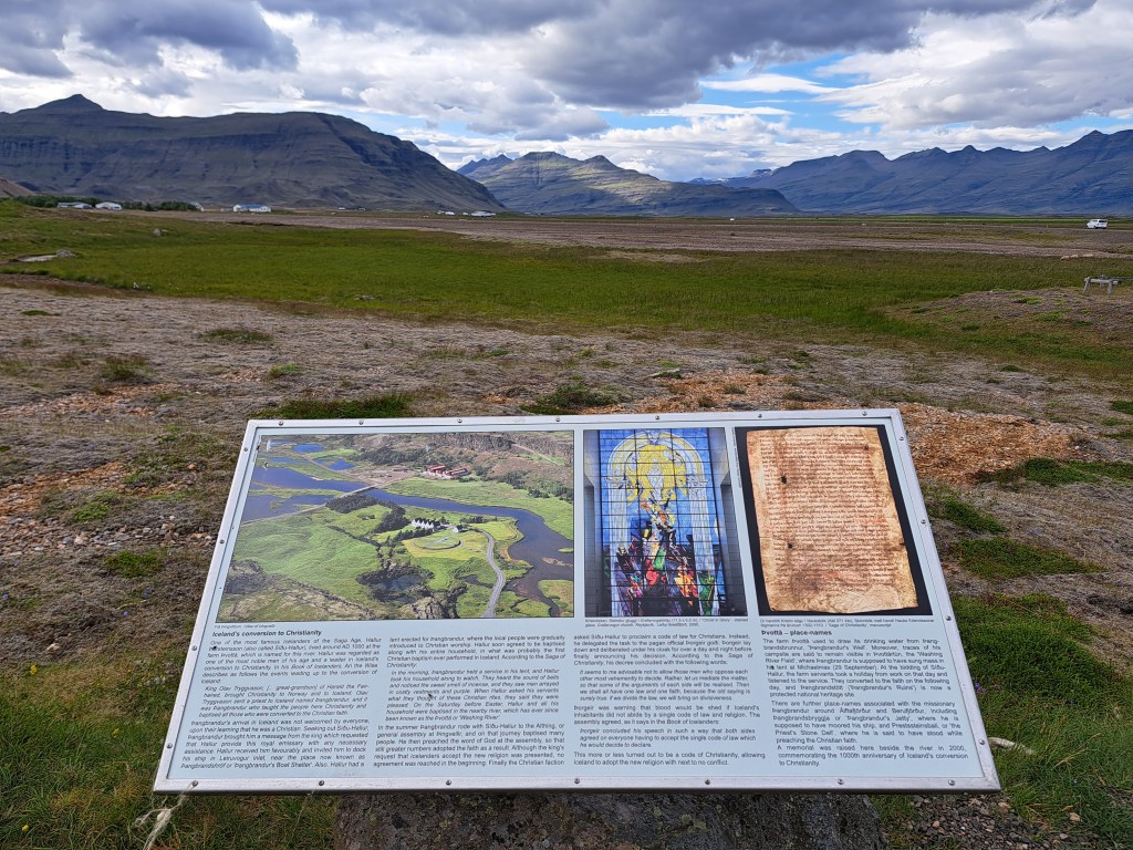 Our first stop was Thvotta, a series of rock formation located near a farmhouse that was a source of early Icelandic missionary work. According to the information on the signs, the missionaries had come from Norway.