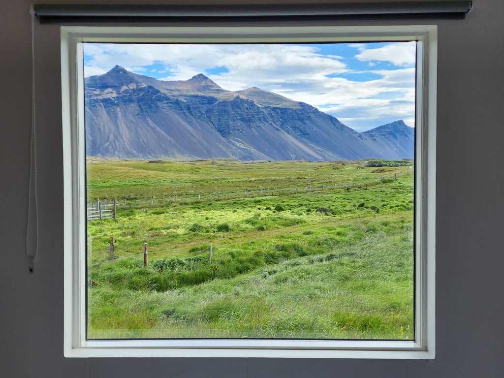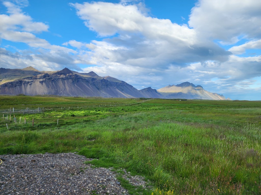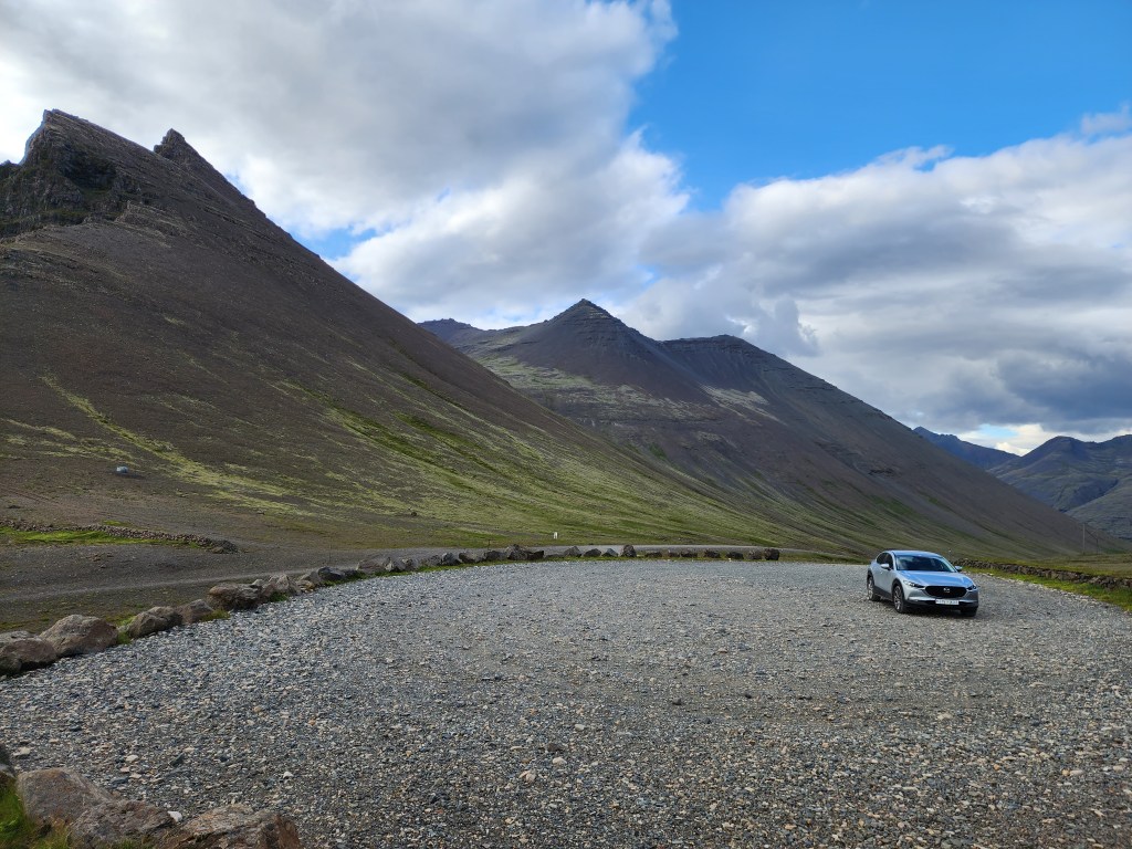 There was a rough drive up a gravel path next to a tunnel near Höfn. It took us to a look-out spot with views of Höfn and the coast in the distance.