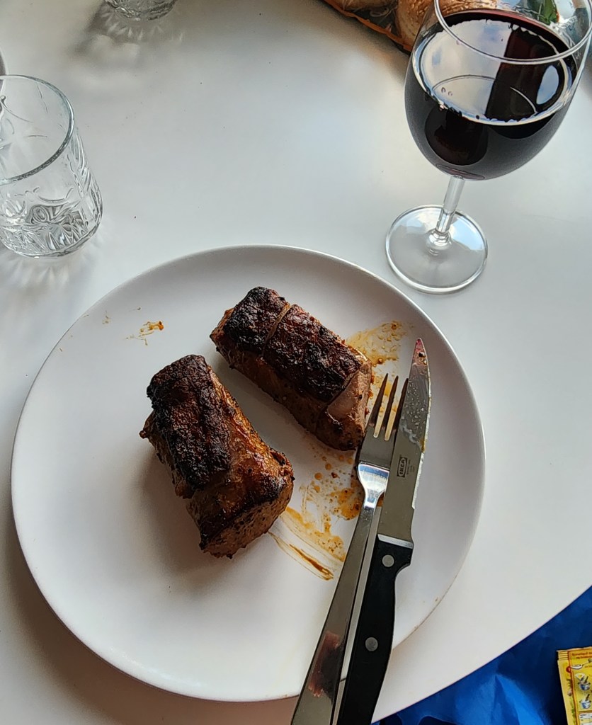 After briefly dropping off our stuff we headed into town to pick up food for dinner as it was already well into the evening. The supermarket was a mad rush of tourists grabbing whatever grilling foods they could, from fish to sausages. The fridges in the meat department were rapidly becoming bare, but Kim spotted a local lamb tenderloin. With a grill available it was an easy choice.