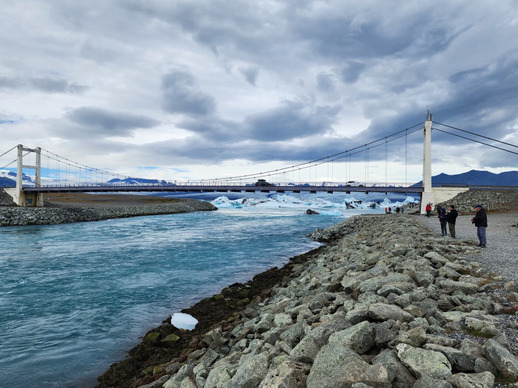 After enjoying Jökulsárlón we returned to the car and drove west across the bridge. Just a short distance away was a spot to see the quieter, western side of the lagoon.