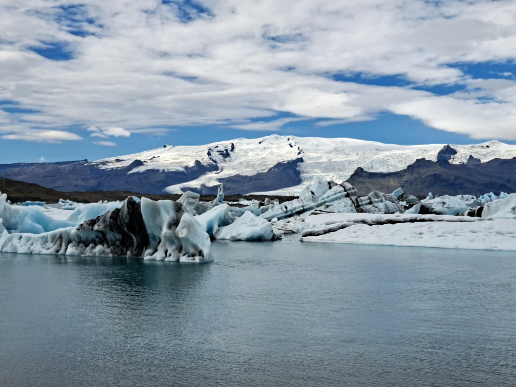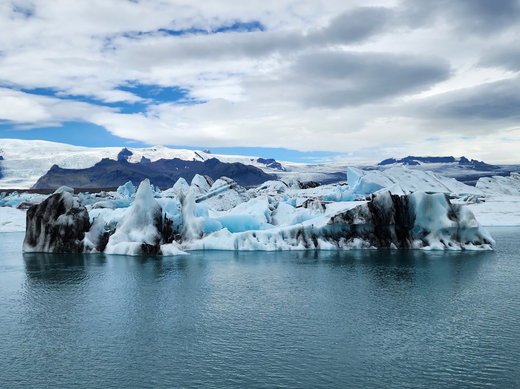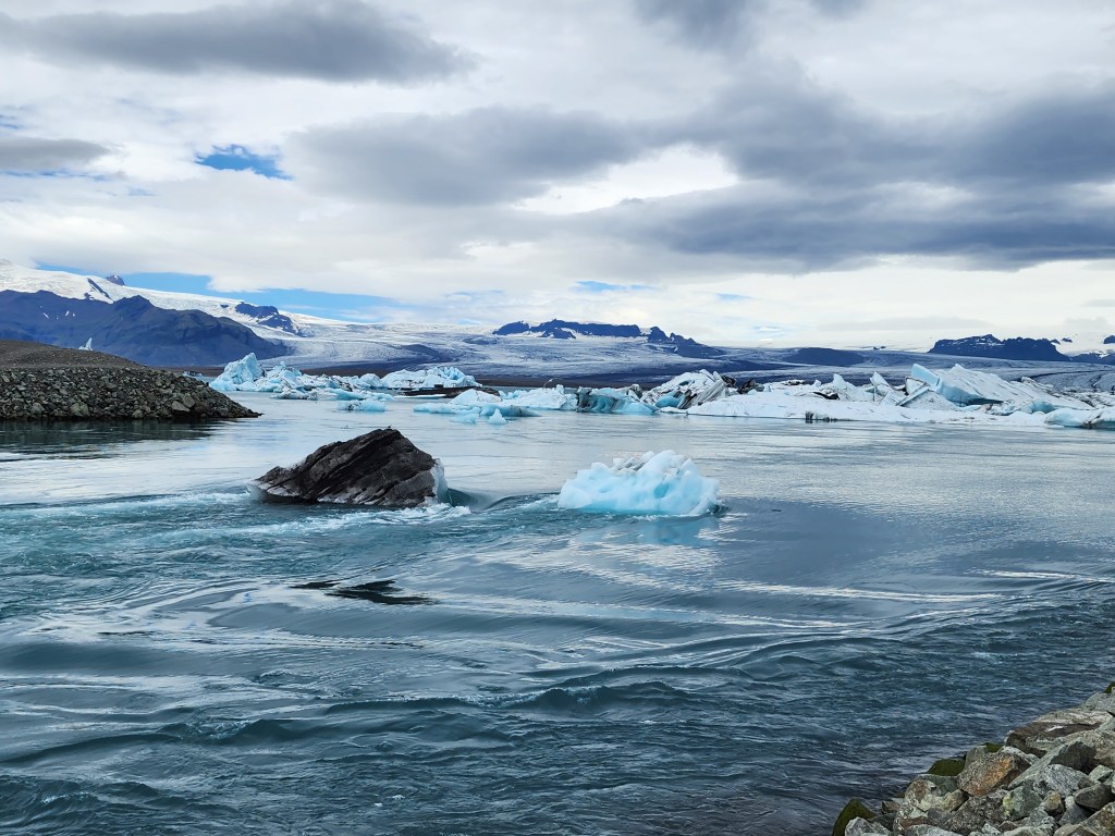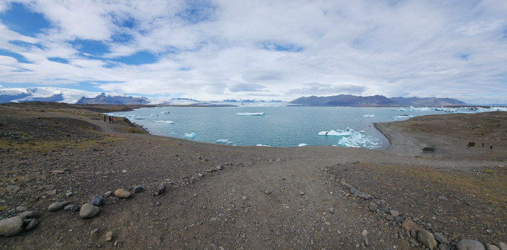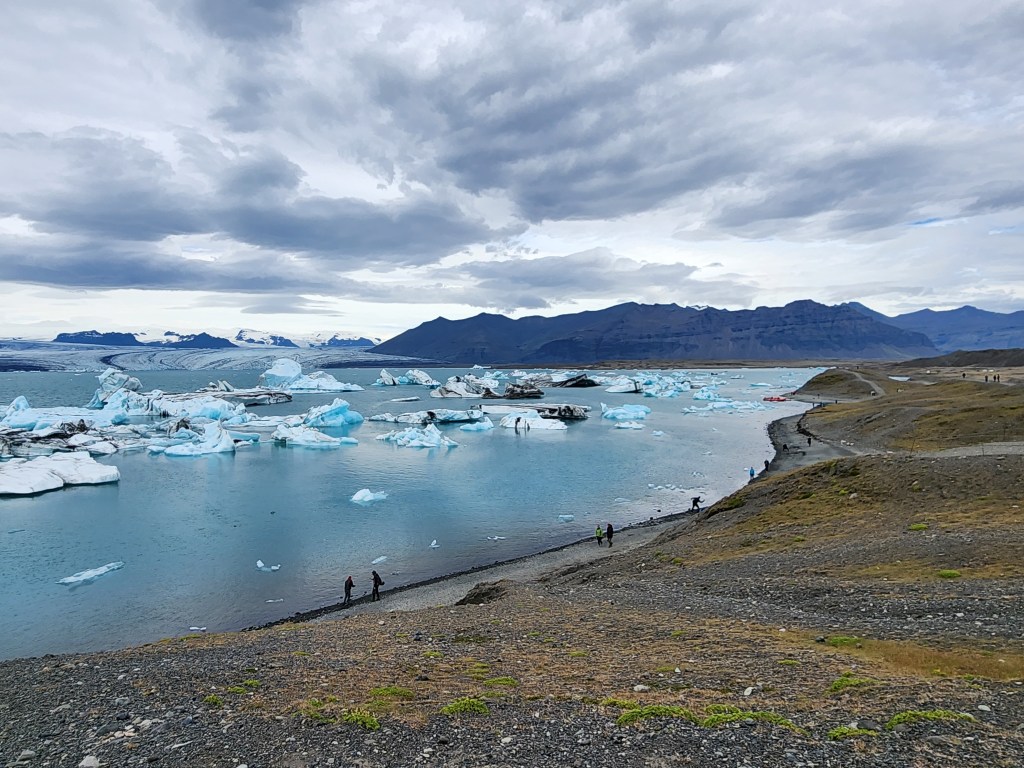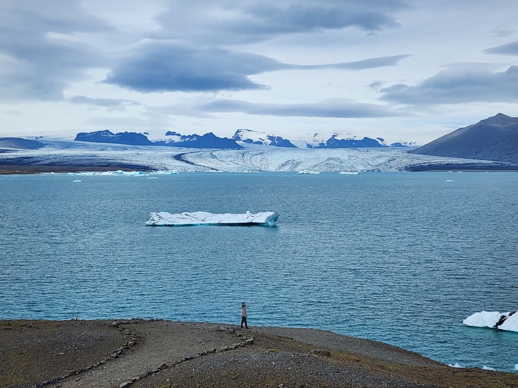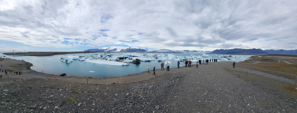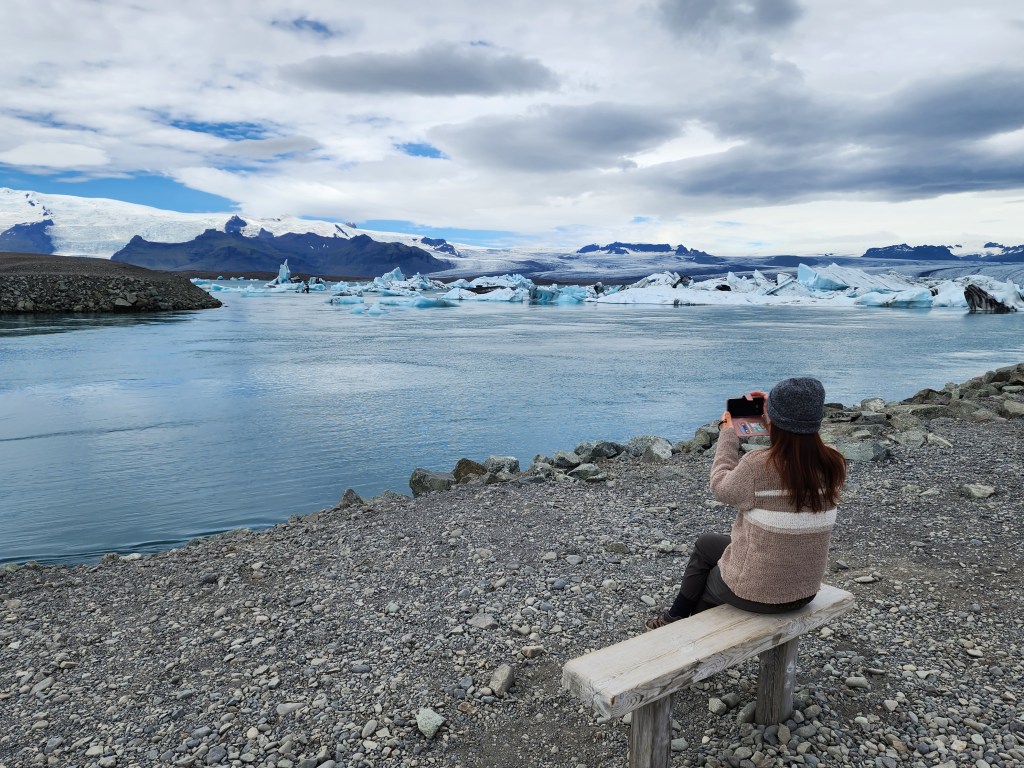The area was full of tourists, but it was easy to find quieter spots away from the crowds. This lagoon had been growing in size as the melting glaciers added more water to it.