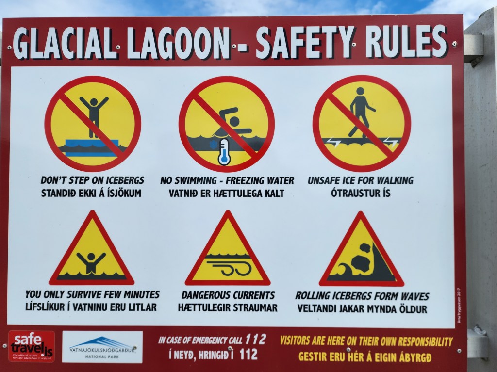 -there were two large parking lots at the Jökulsárlón glacier stop. Both were self-pay using machines using credit cards (cash not accepted at machines, which was common in Iceland). The first lot was closer to the glaciers and was on the inner side of the highway (away from the sea). It was completely full (most tour buses used it as well) so we went to the overflow lot that was located between the highway and the sea. It was busy but there were many spaces available