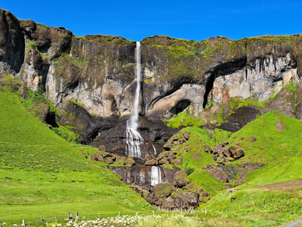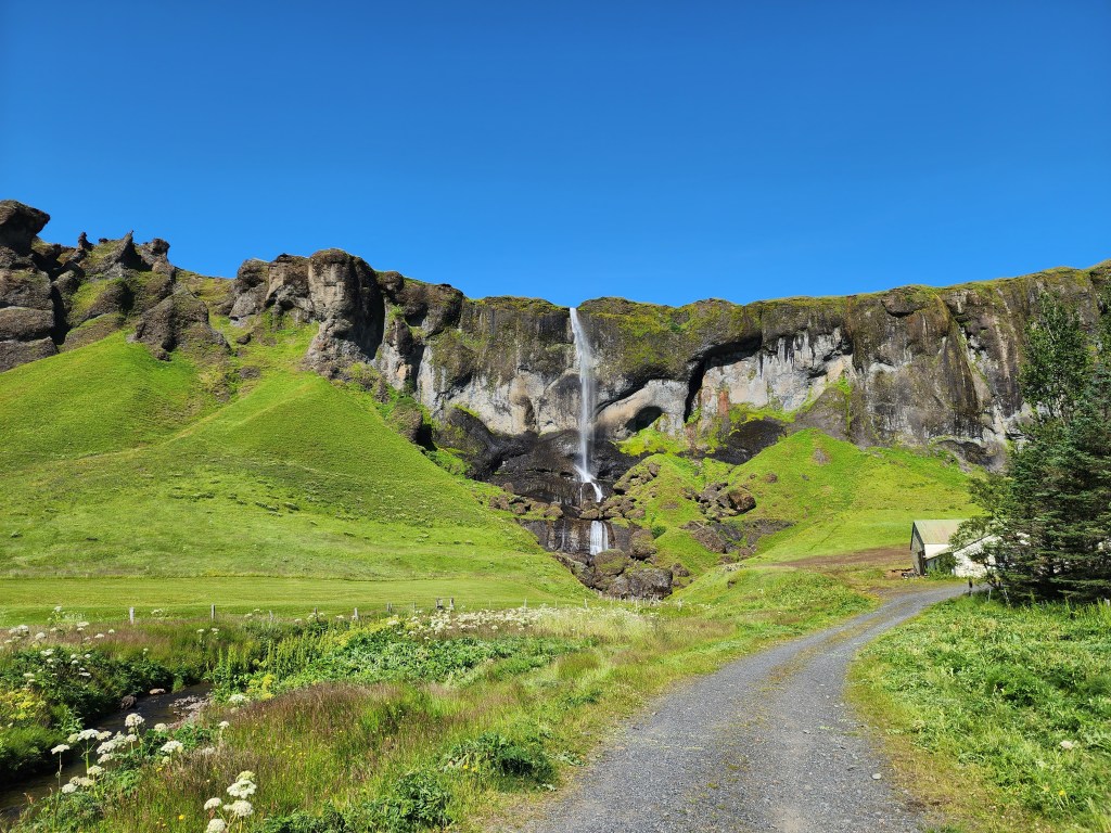 After having lunch in the car, it was back on the highway. We made a quick stop at Foss á Síðu by the early afternoon. There was a small parking area next to the highway but the falls are on a private property so you can’t get any closer than the parking area. The people who live there have the best view!