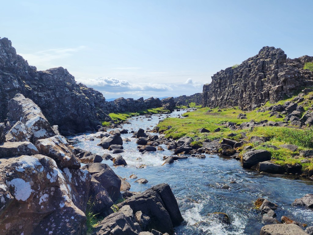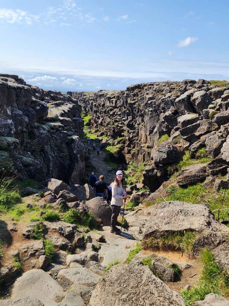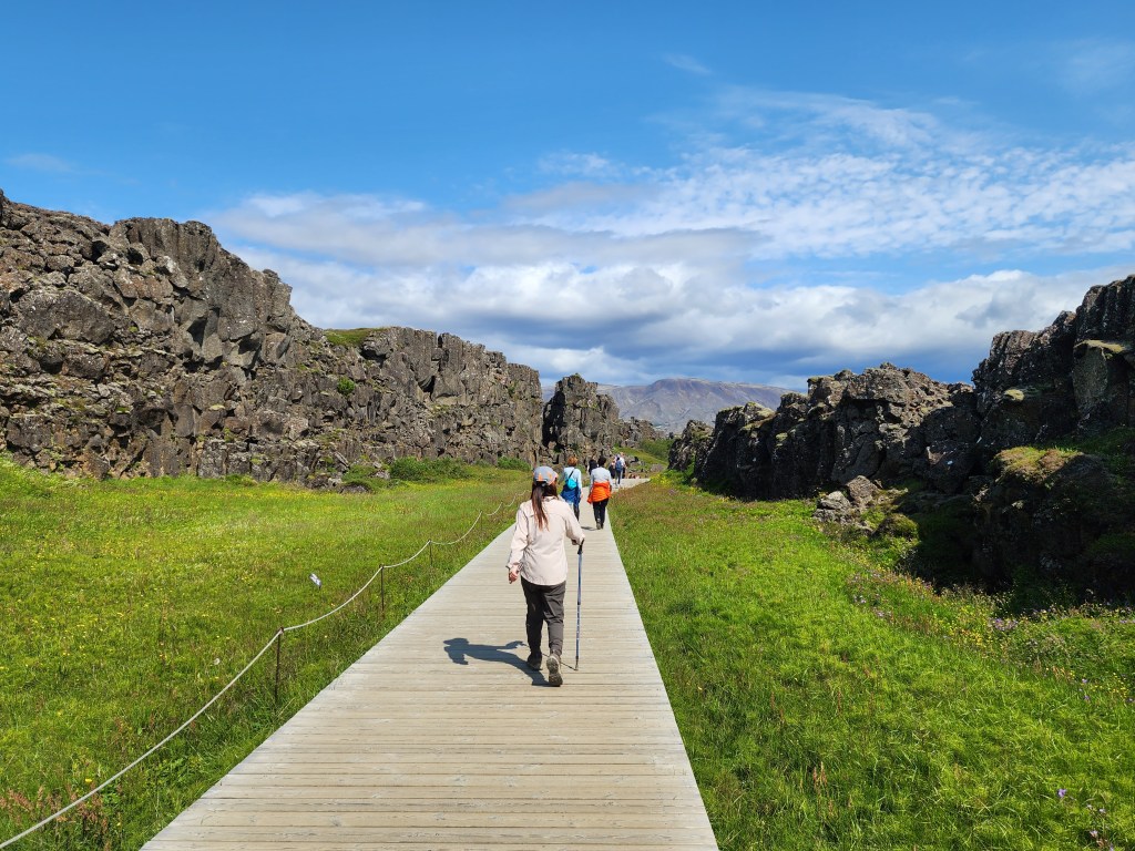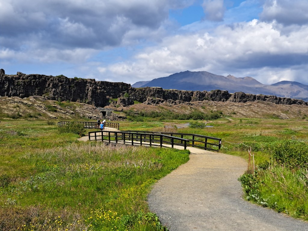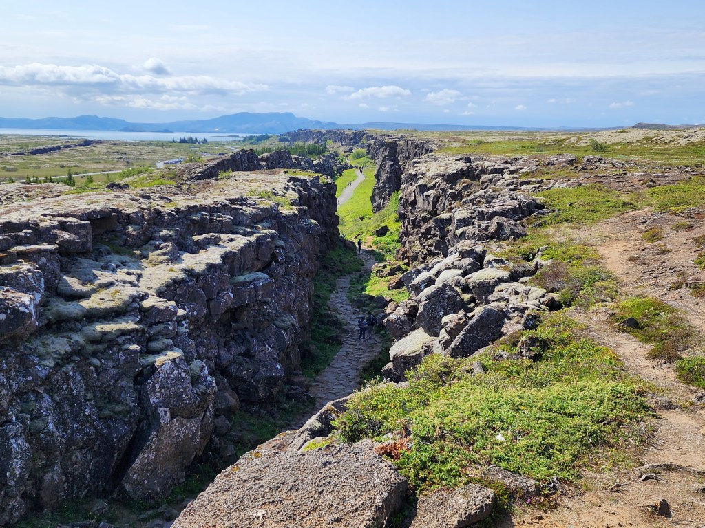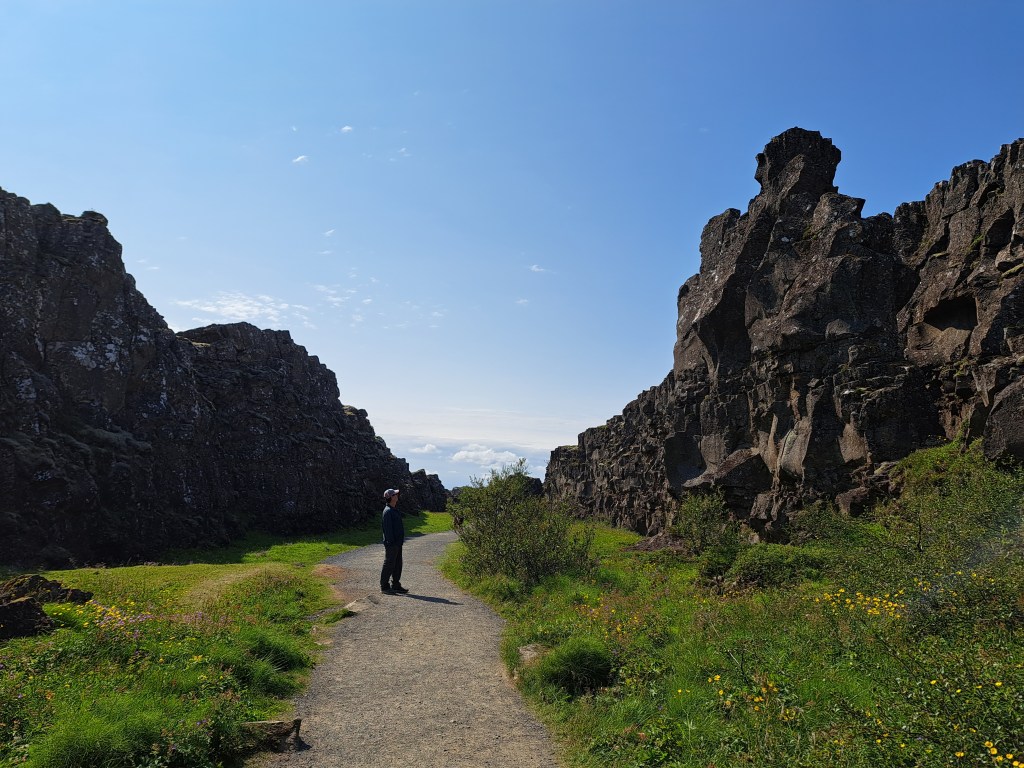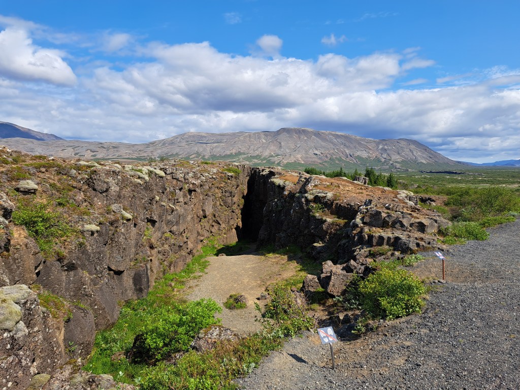 A short distance away was a much larger parking lot with a different way to Dead Man’s Walk and Lögberg, where the parliament used to meet. Going down into the park, you are walking across the edge of the North American continent onto the Eurasian one.
